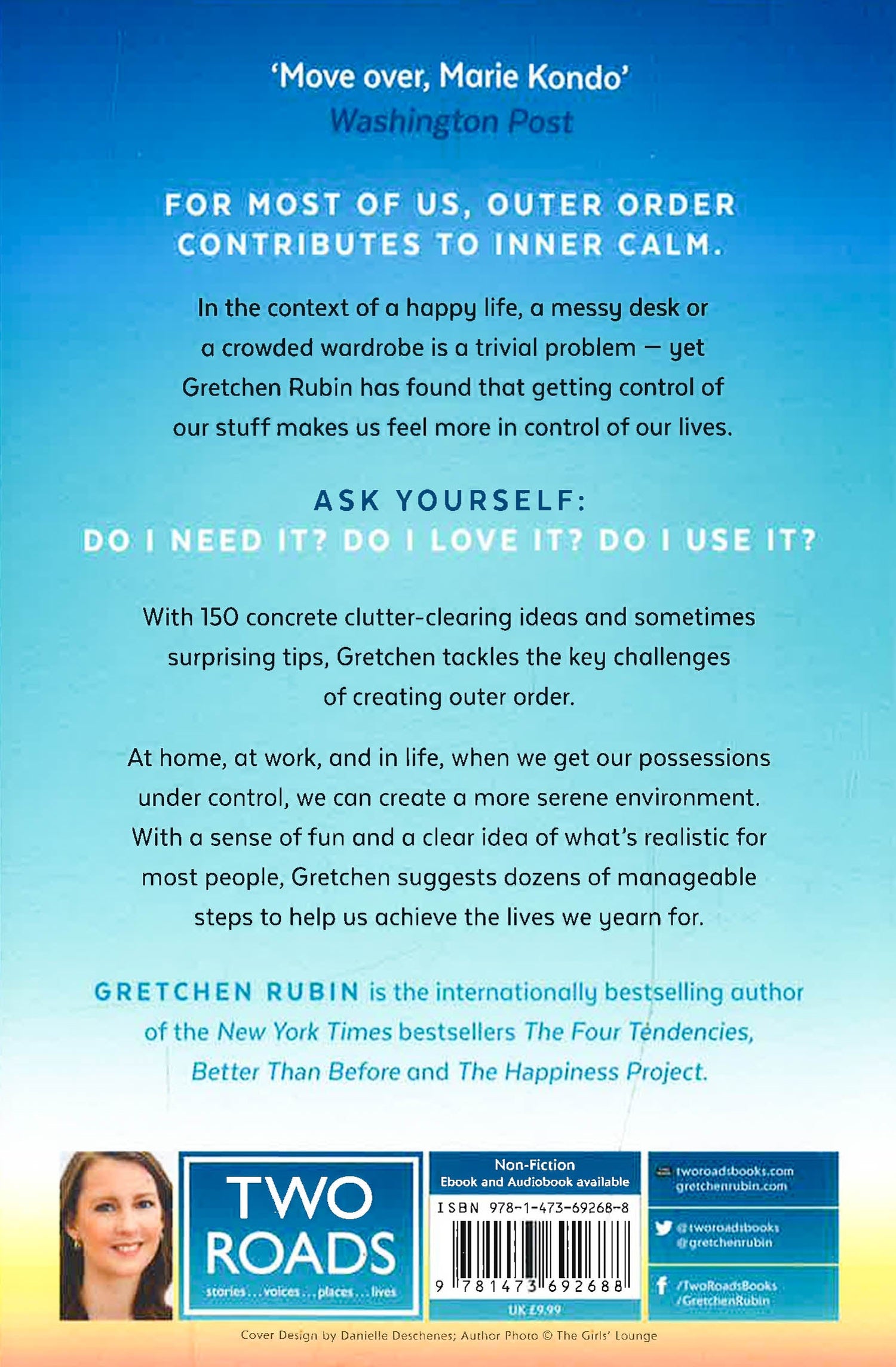 THE NEW YORK TIMES BESTSELLER'MOVE OVER, MARIE KONDO' Washington Post'EXCELLENT' Telegraph'YOU WILL FEEL LIKE YOU CAN TAKE ON THE WORLD' Grazia'WISHING I HAD A RUBIN TO HELP ME MAKE SENSE OF MY BELONGINGS' Red'DECLUTTER YOUR WAY TO HAPPINESS' Good HousekeepingIn the context of a happy life, a messy desk or a crowded wardrobe is a trivial problem - yet Gretchen Rubin found that getting control of our stuff makes us feel more in control of our lives.Ask yourself: DO I NEED IT? DO I LOVE IT? DO I USE IT?With 150 concrete clutter-clearing ideas, insights, strategies, and sometimes surprising tips, Gretchen tackles the key challenges of creating outer order by explaining how to 'make choices', 'create order', 'know yourself', 'cultivate useful habits' and, of course, how to 'add beauty'.At home, at work, and in life, when we get our possessions under control, we can create a more serene environment. With a sense of fun, and a clear idea of what's realistic for most people, Gretchen suggests dozens of manageable steps to help us achieve the lives we yearn for.ALSO BY GRETCHEN RUBINThe Four Tendencies: the indispensable personality profiles that reveal how to make your life betterANDBetter Than Before: learn how to make good habits and break bad ones, for goodANDHappier At Home: a year-long experiment in making the everyday extraordinary