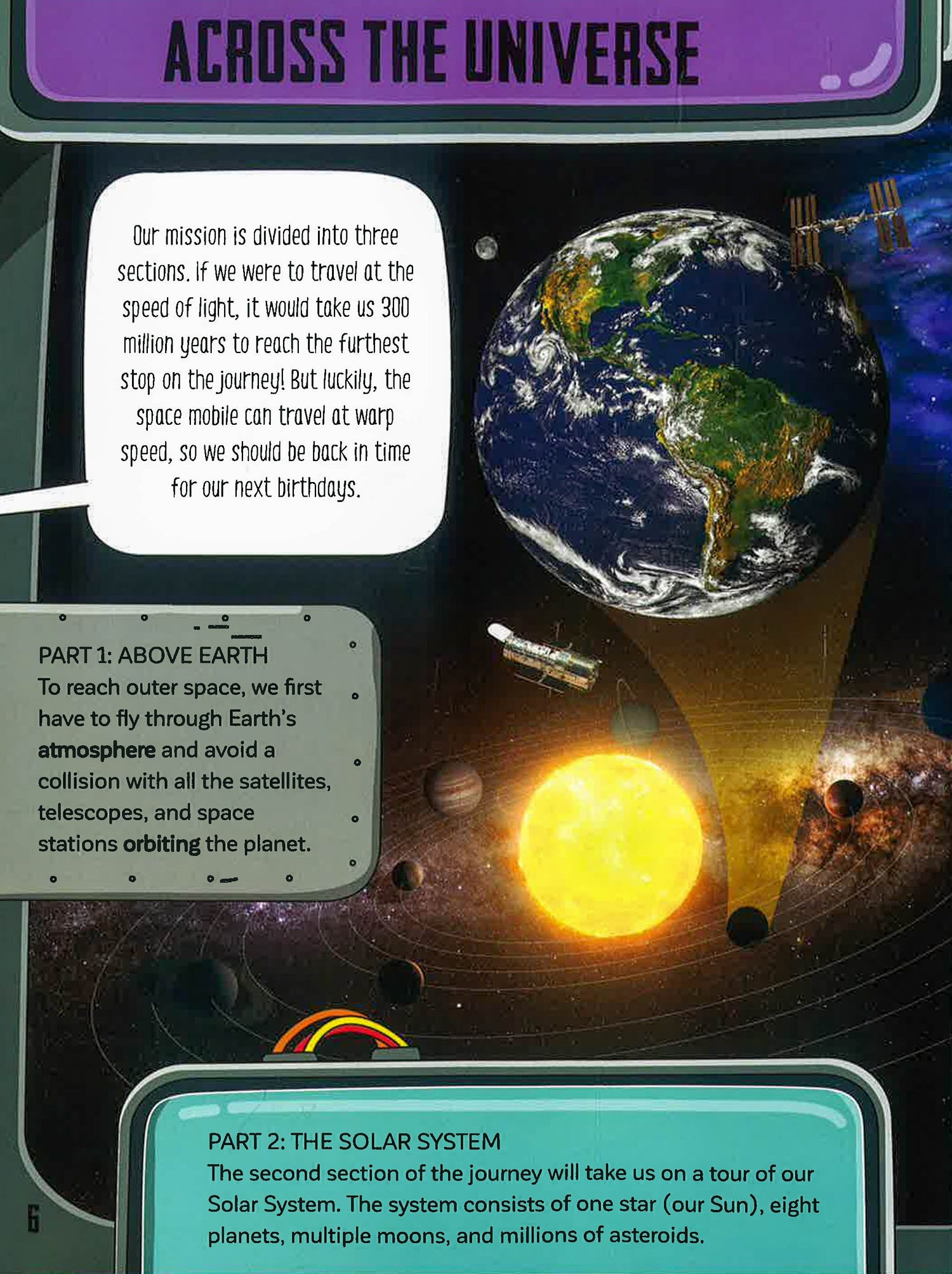 Join our intergalactic explorers as they travel across our Solar System and beyond. Find out what it's like to live on the Moon, visit the International Space Station and fly through Saturn's rings, before you head deeper into space to escape black holes and watch stars explode.