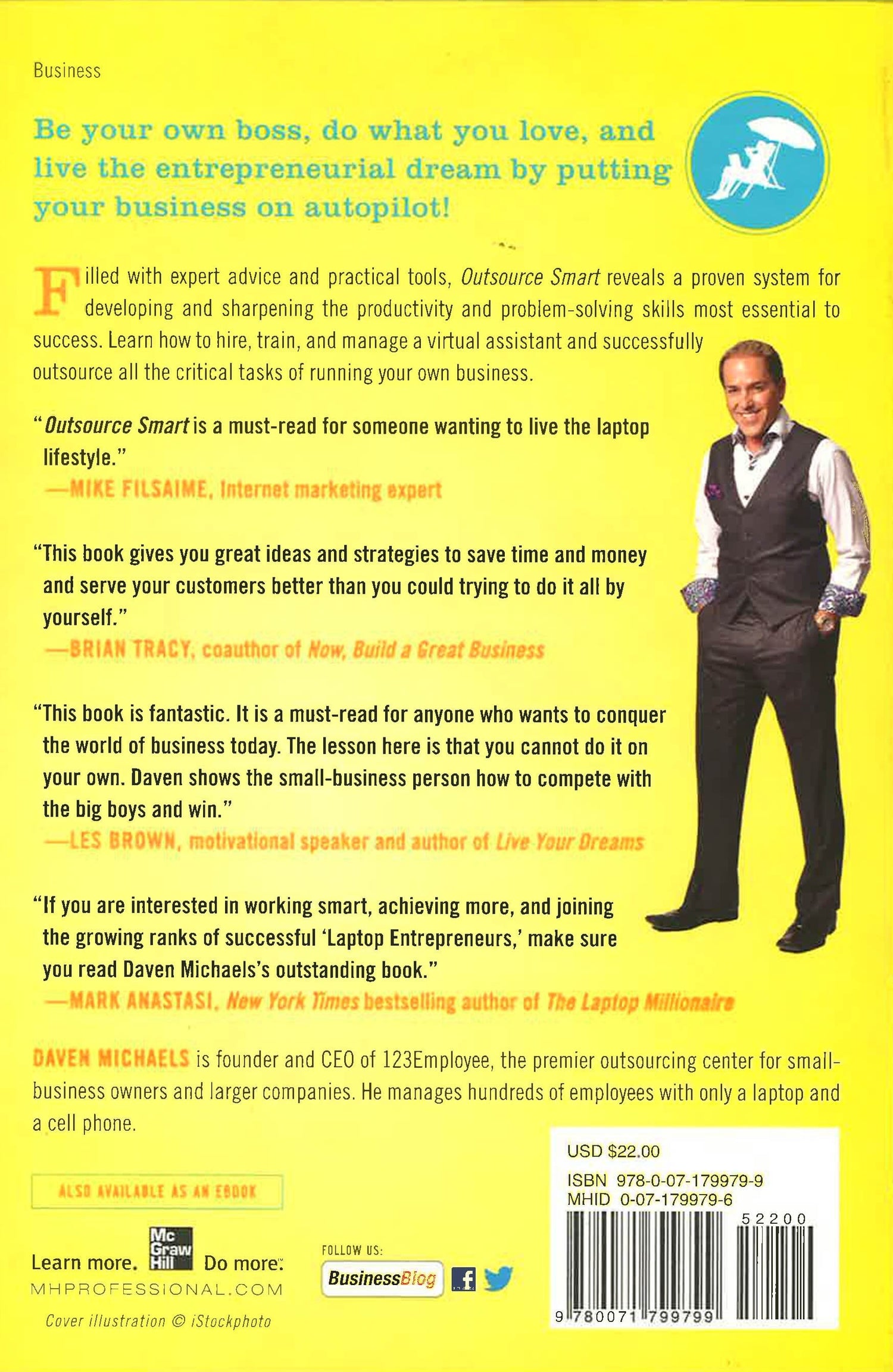 The New York Times and Los Angeles Times BestsellerBe your own boss, do what you love, and live the entrepreneurial dream by putting your business on autopilot! Filled with expert advice and practical tools, Outsource Smart reveals a proven system fordeveloping and sharpening the productivity and problem-solving skills most essential to success. Learn how to hire, train, and manage a virtual assistant and successfully outsource all the critical tasks of running your own business. "Outsource Smart is a must-read for someone wanting to live the laptop lifestyle." -- Mike Filsaime, Internet marketing expert "This book gives you great ideas and strategies to save time and money and serve your customers better than you could trying to do it all by yourself." -- Brian Tracy, coauthor of Now, Build a Great Business "This book is fantastic. It is a must-read for anyone who wants to conquer the world of business today. The lesson here is that you cannot do it on your own. Daven shows the small-business person how to compete withthe big boys and win." -- Les Brown, motivational speaker and author of Live Your Dreams If you are interested in working smart, achieving more, and joining the growing ranks of successful 'Laptop Entrepreneurs,' make sure you read Daven Michaels's outstanding book." -- Mark Anastasi, New York Times bestselling author of The Laptop Millionaire