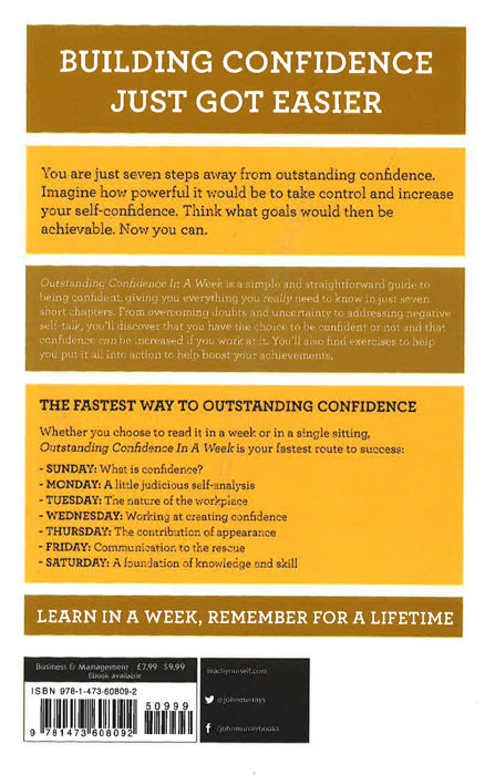 Each of the seven chapters in Outstanding Confidence In A Week covers a different aspect: