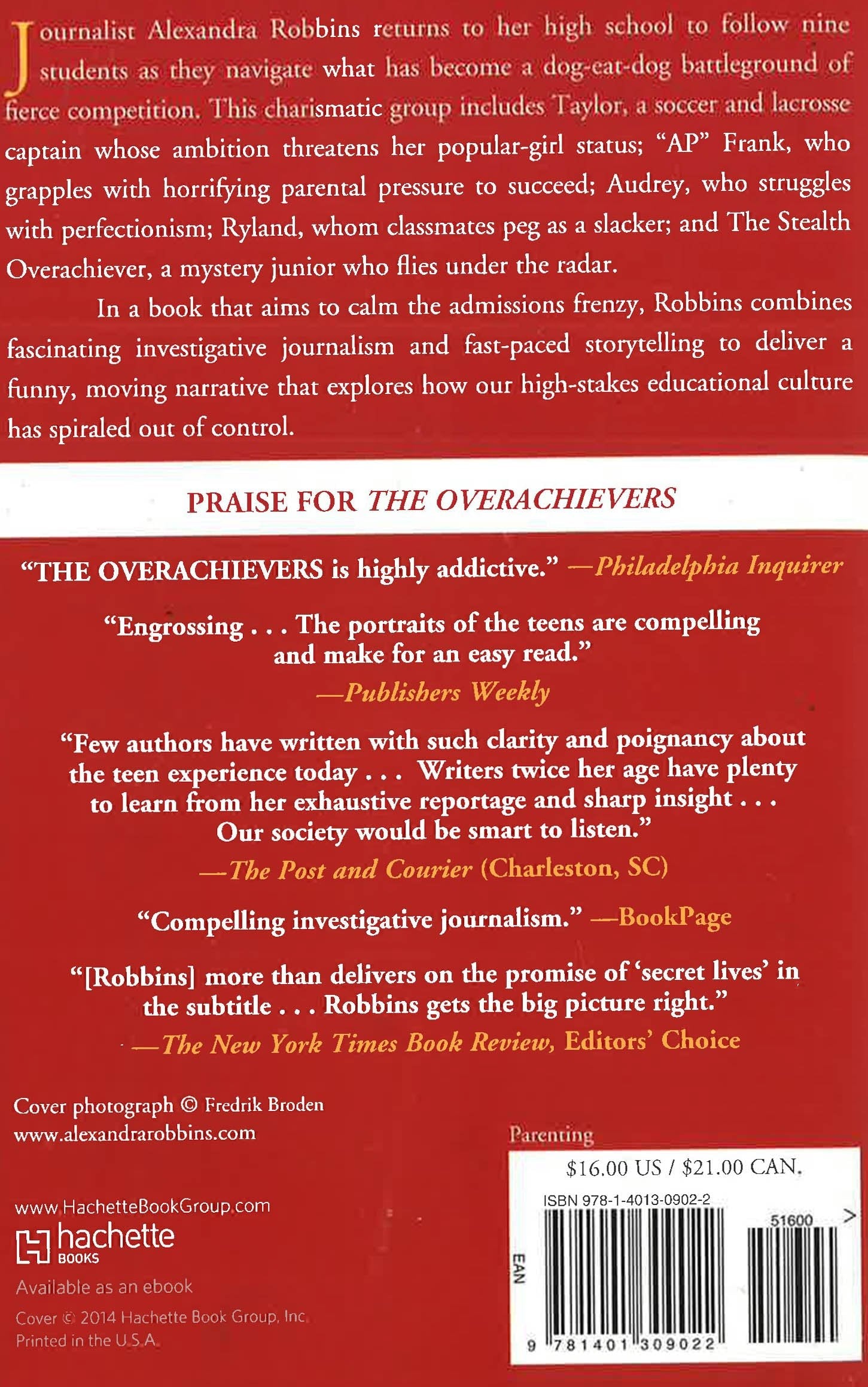 Robbins tackles hard-hitting issues such as the student and teacher cheating epidemic, over-testing, sports rage, the black market for study drugs, and a college admissions process so cutthroat that some students are driven to depression and suicide because of a B. Even the earliest years of schooling have become insanely competitive, as Robbins learned when she gained unprecedented access into the inner workings of a prestigious Manhattan kindergarten admissions office. A compelling mix of fast-paced storytelling and engrossing investigative journalism, The Overachievers aims both to calm the admissions frenzy and to expose its escalating dangers.