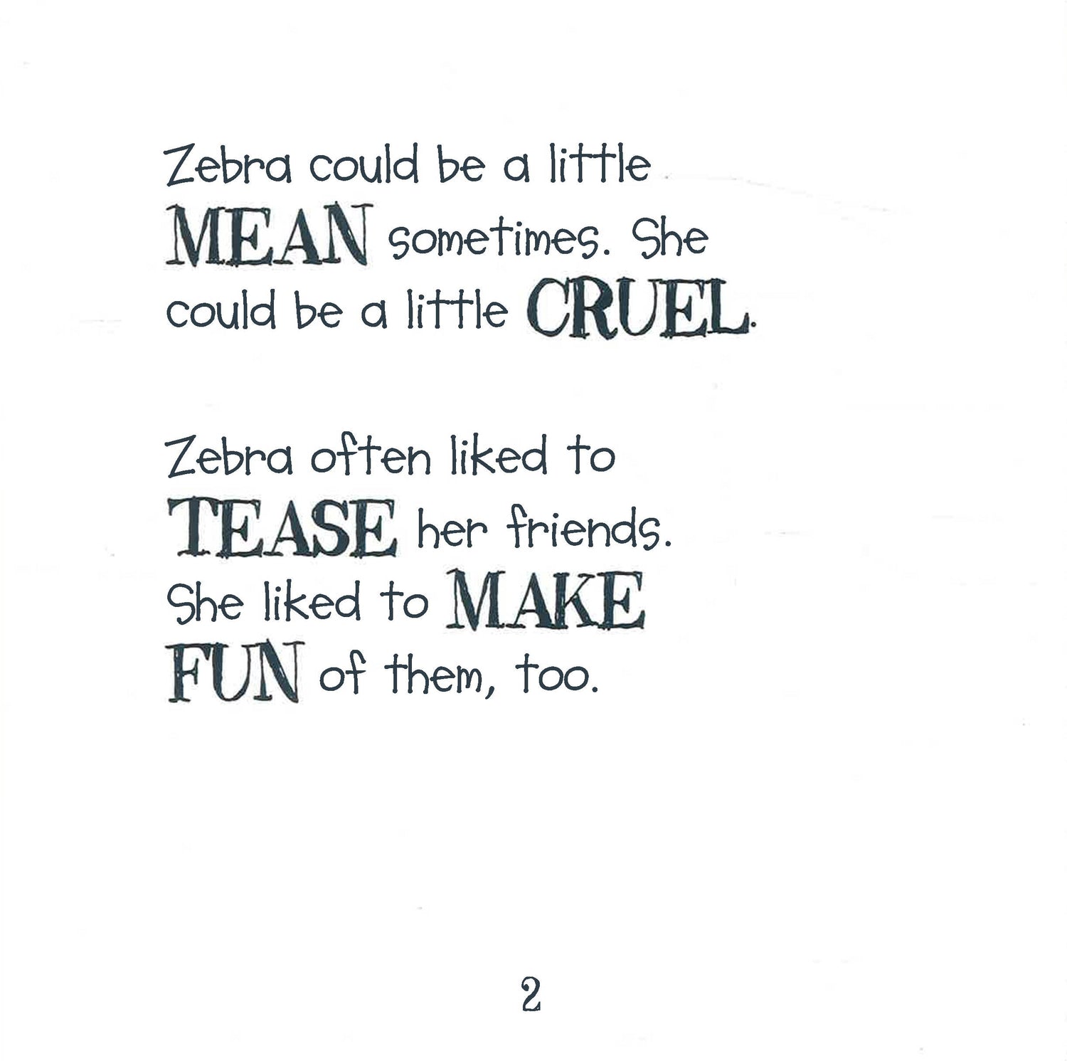 Zebra can be mean. Sometimes, she bullies her friends, and that upsets them. How can Zebra learn to stop and be nice?
