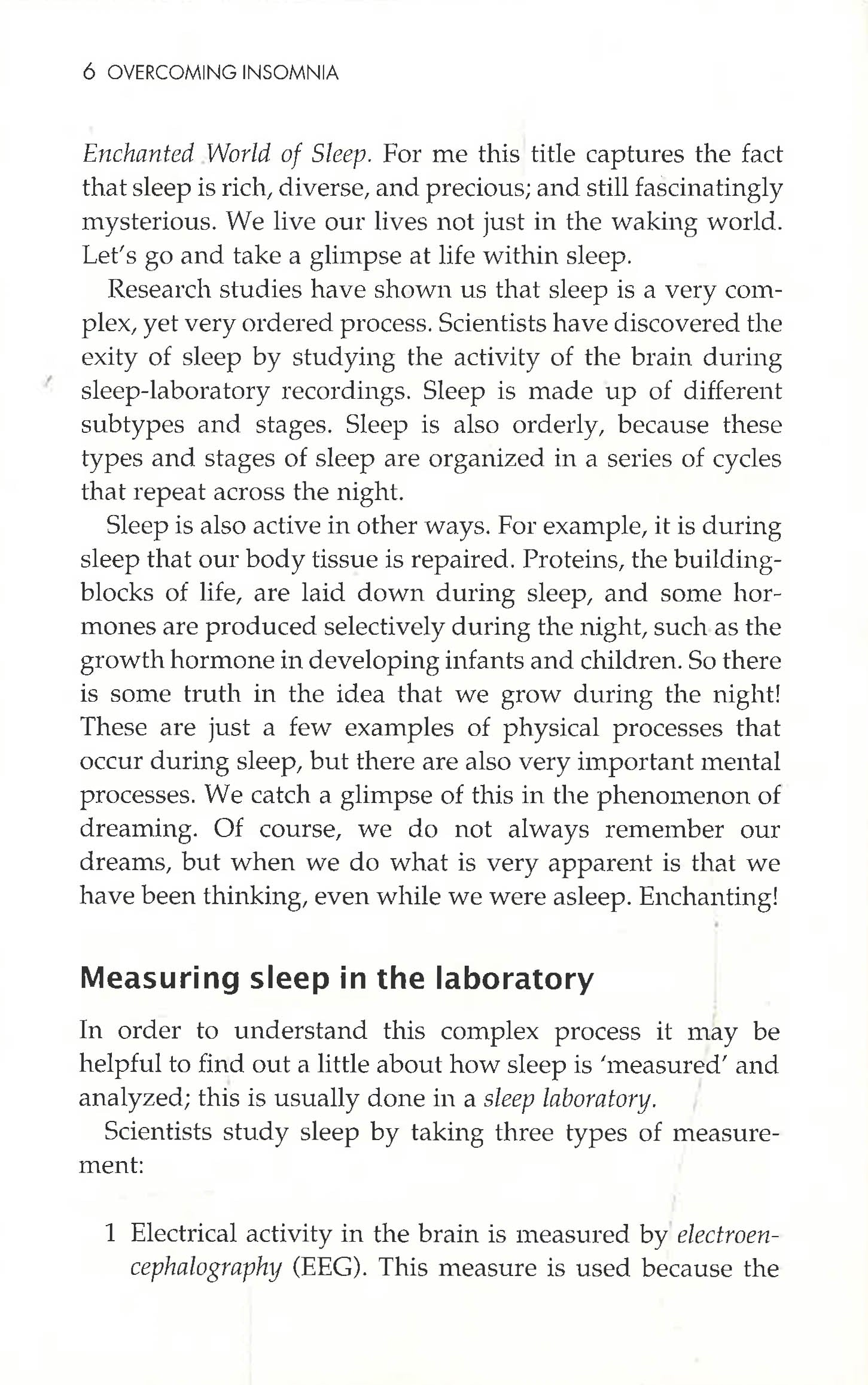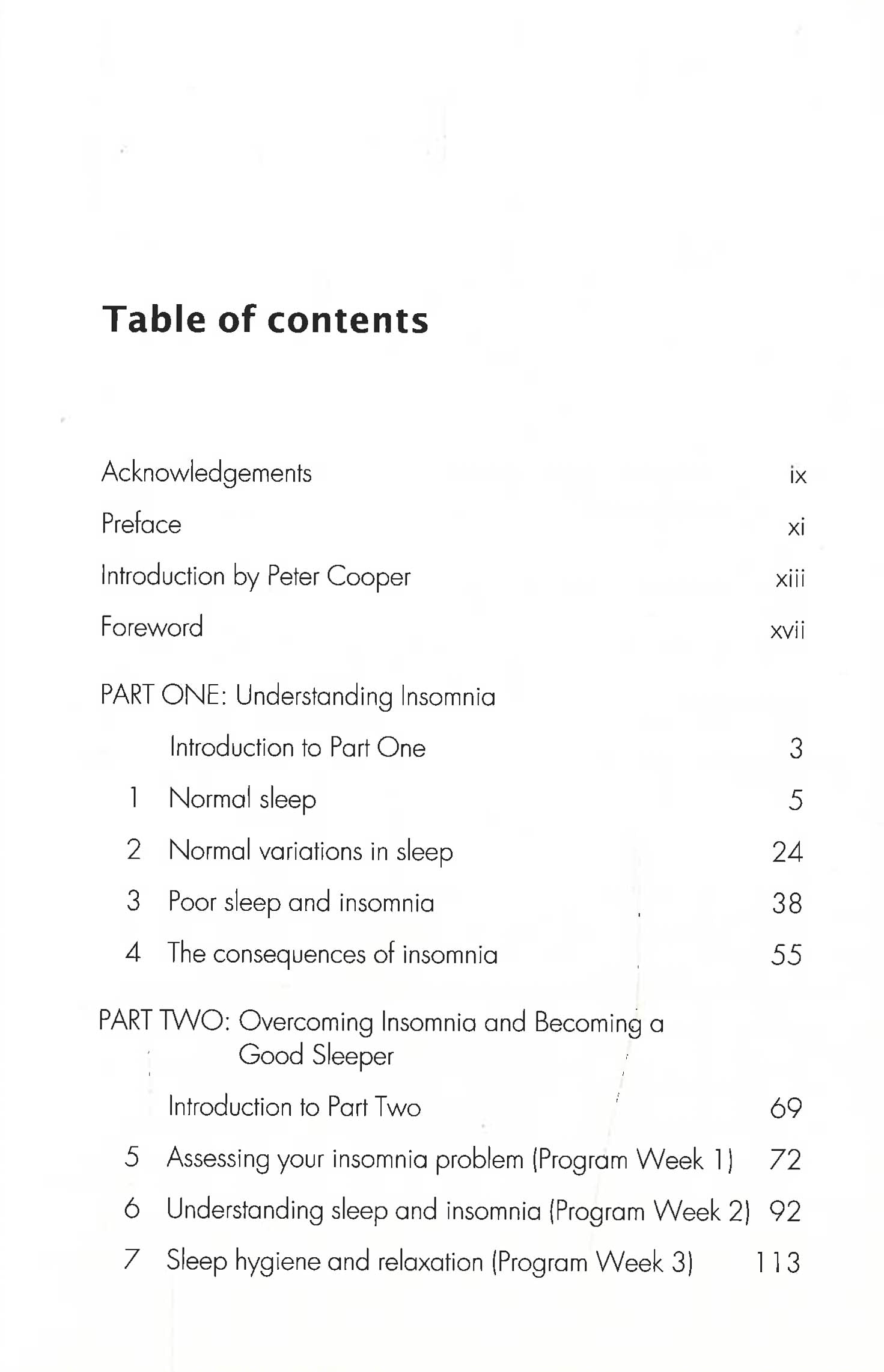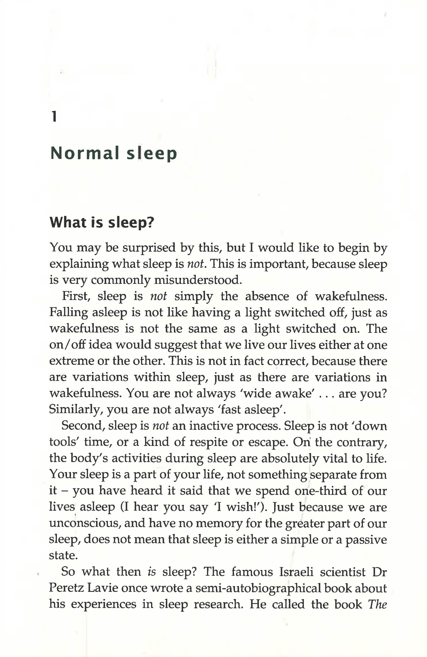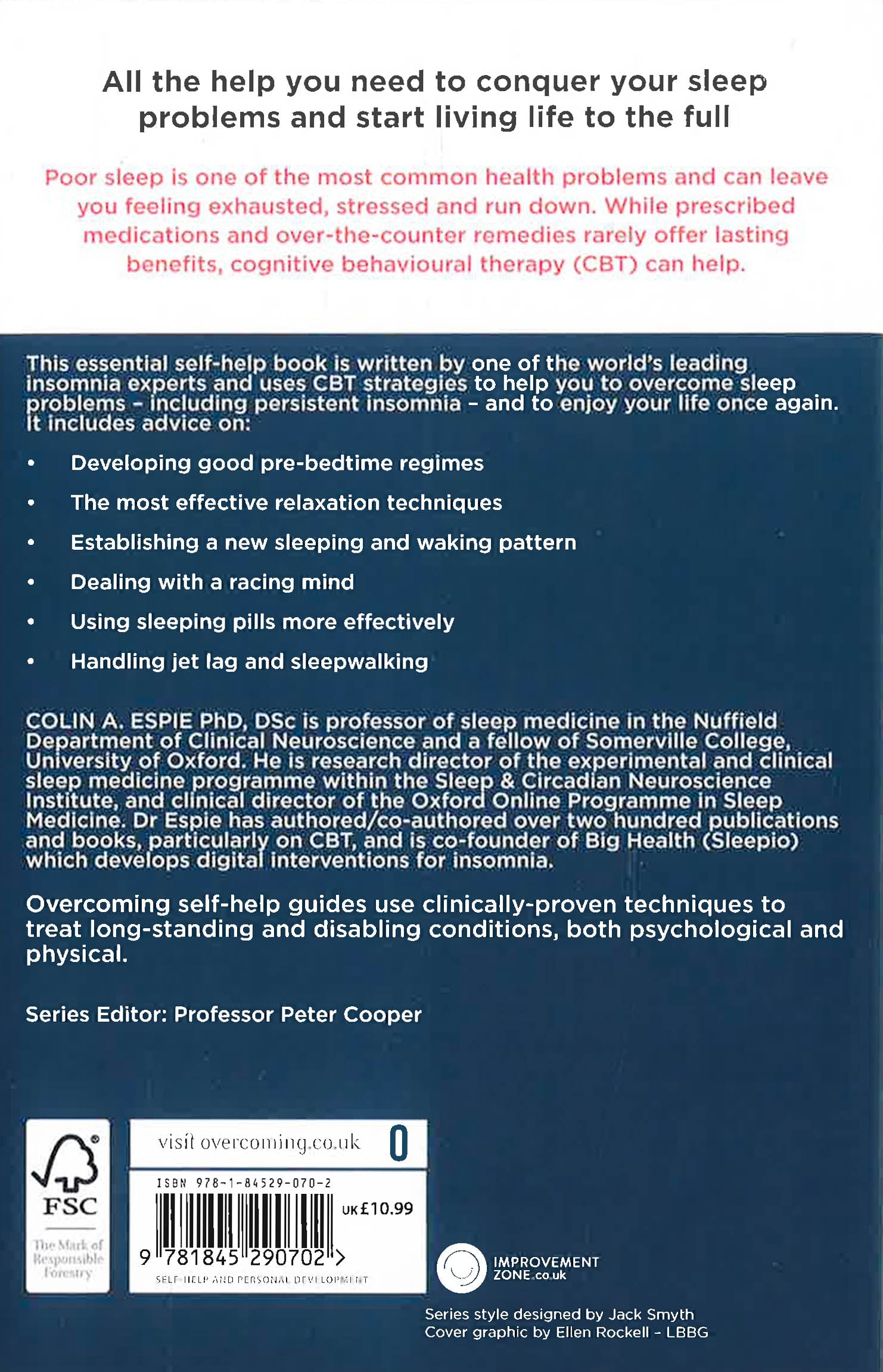 A Books on Prescription TitleAll the help you need to conquer your sleep problems and start living life to the fullPoor sleep is one of the most common health problems and can leave you feeling exhausted, stressed and run-down. While prescribed medications and over-the-counter remedies rarely offer lasting benefits, Cognitive Behavioural Therapy can help enormously and is the treatment of choice for insomnia.Develop good pre-bedtime routines.The most effective relaxation techniques.Establish a new sleeping and waking pattern.Deal with a racing mind.Use sleeping pills more effectively.Handle jet lag and sleepwalking.