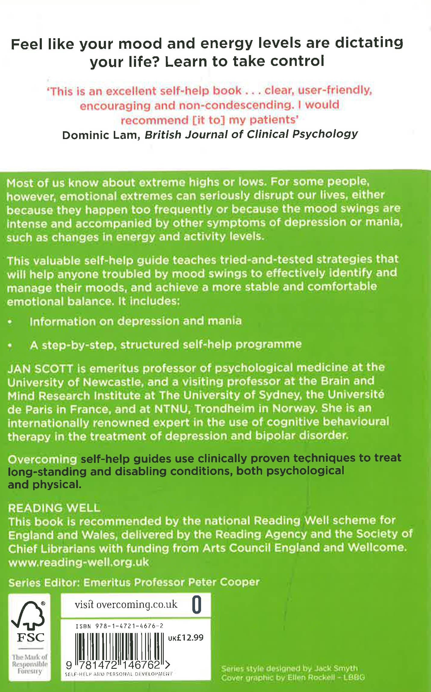 Most of us know about extreme highs or lows. For some people, however, emotional extremes can seriously disrupt our lives, either because they happen too frequently or because the mood swings are intense and accompanied by other symptoms of depression or mania, such as changes in energy and activity levels.This valuable self-help guide teaches tried-and-tested strategies that will help anyone troubled by mood swings to effectively identify and manage their moods, and achieve a more stable and comfortable emotional balance. It includes:- Information on depression and mania- A step-by-step, structured self-help programme and monitoring sheetsOvercoming self-help guides use clinically proven techniques to treat long-standing and disabling conditions, both psychological and physical.READING WELLThis book is recommended by the national Reading Well scheme for England and Wales, delivered by the Reading Agency and the Society of Chief Librarians with funding from Arts Council England and Wellcome.www.reading-well.org.ukSeries Editor: Emeritus professor Peter Cooper