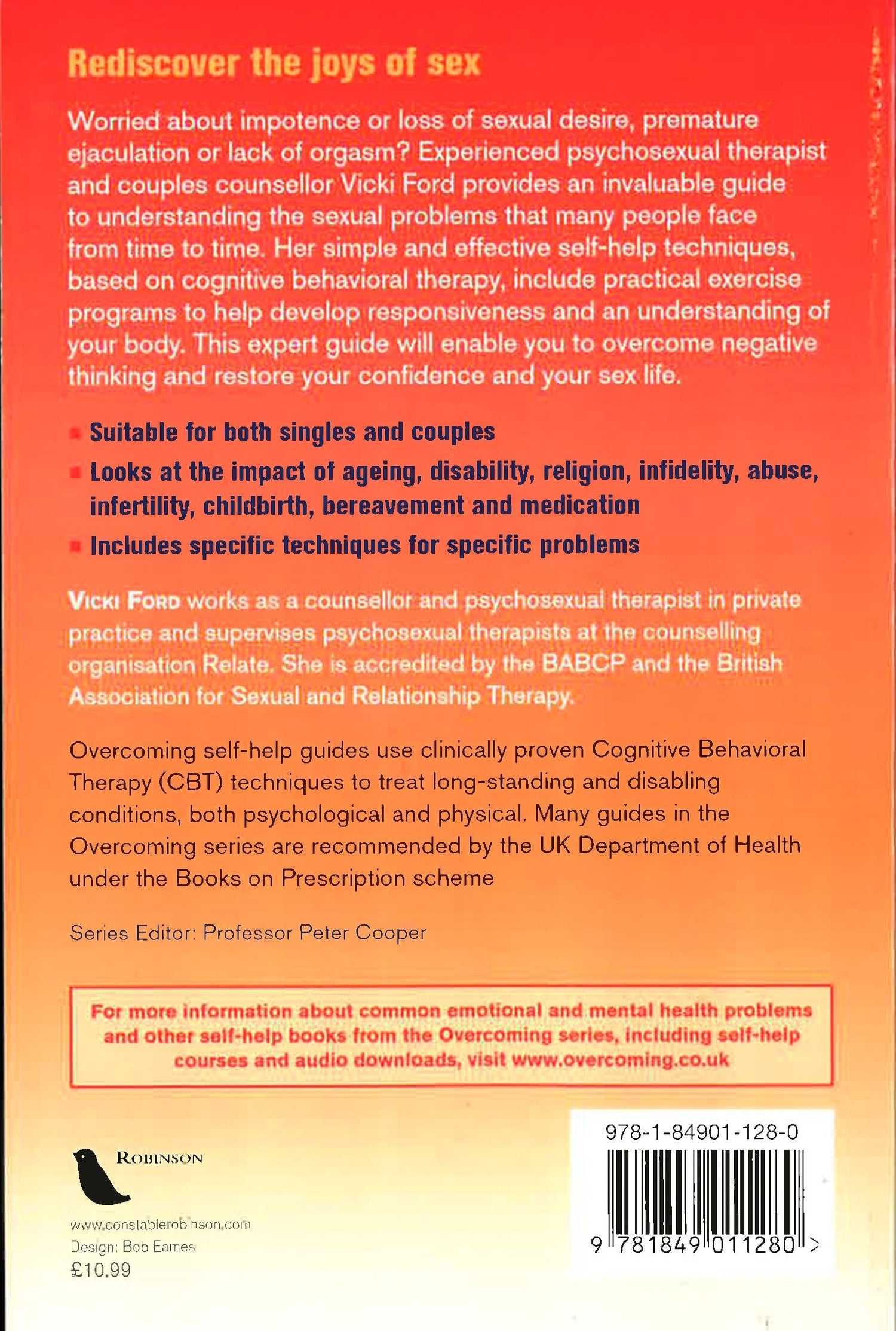 Experienced sex therapist Vicki Ford provides a guide to understanding sexual problems including impotence and loss of sexual desire, premature ejaculation and lack of orgasm. The links between mind and body are explained, and how they tend to go wrong. She sets out simple and effective techniques based on CBT that can restore confidence and bring about a mutually satisfying sex life for both partners. - Suitable for both singles and couples - Practical exercises to develop responsiveness and an understanding of your body - Looks at the impact of aging, disability, religion, infidelity, abuse, infertility, childbirth, bereavement, medication and addiction - Specific techniques for specific problems - Contains a complete self-help program and monitoring sheets - Based on clinically proven cognitive behavioural therapy