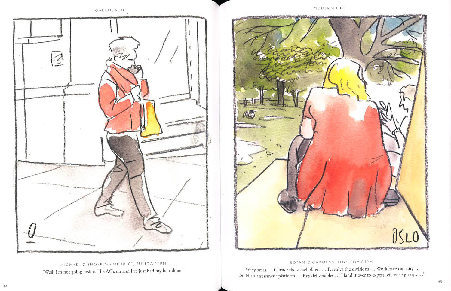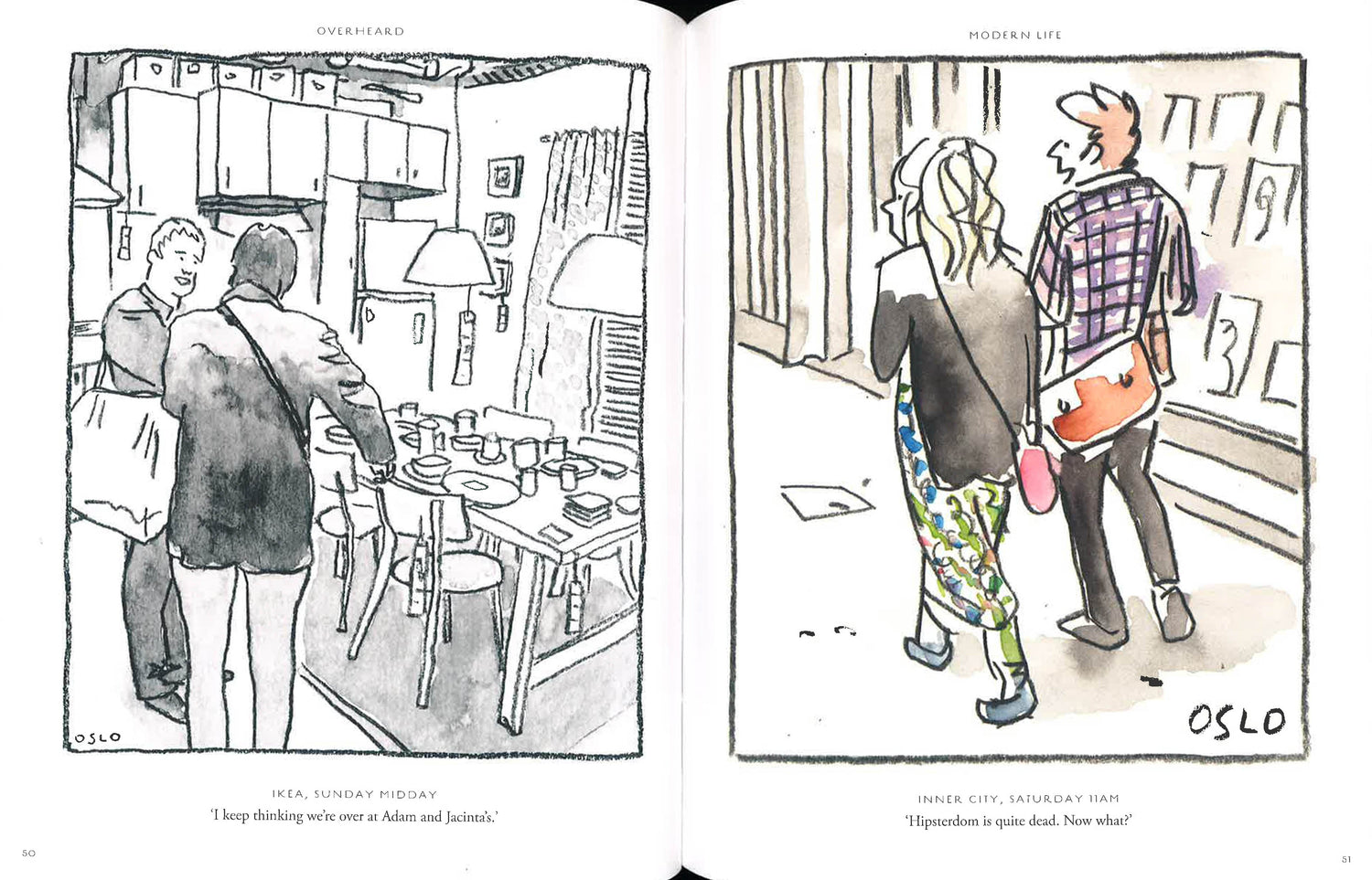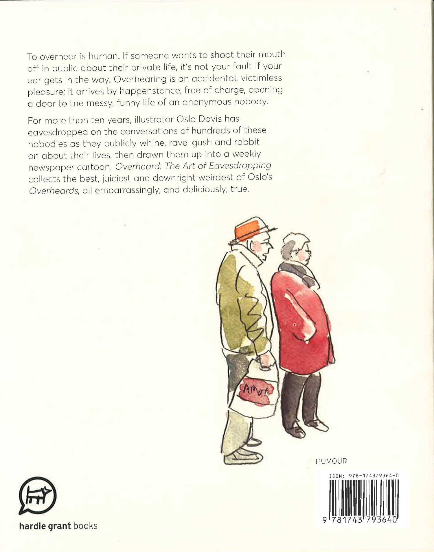 Cartoonist Oslo Davis listens in to real people saying real things - and it's hilarious. Every week since 2007, Oslo Davis has been eavesdropping on people in the city of Melbourne, Australia, and recording what he hears in a cartoon for The Age newspaper. His wry observations have earned him a cult following, and ten years on he has become a beloved fixture. Now, for the first time, his Overheard cartoons have been collected in a hilarious compilation, with chapters covering Family Matters, Modern Life, Relationships, The Daily Grind, Friends Like These and What The. Transported through the city by Oslo's nimble pen, we listen in to the daughter telling her mother not to interfere in party preparations, the fat man pondering what is least bad to eat, and the hipster commenting on what is truly hip. Overheardis a hysterical collection with universal appeal.