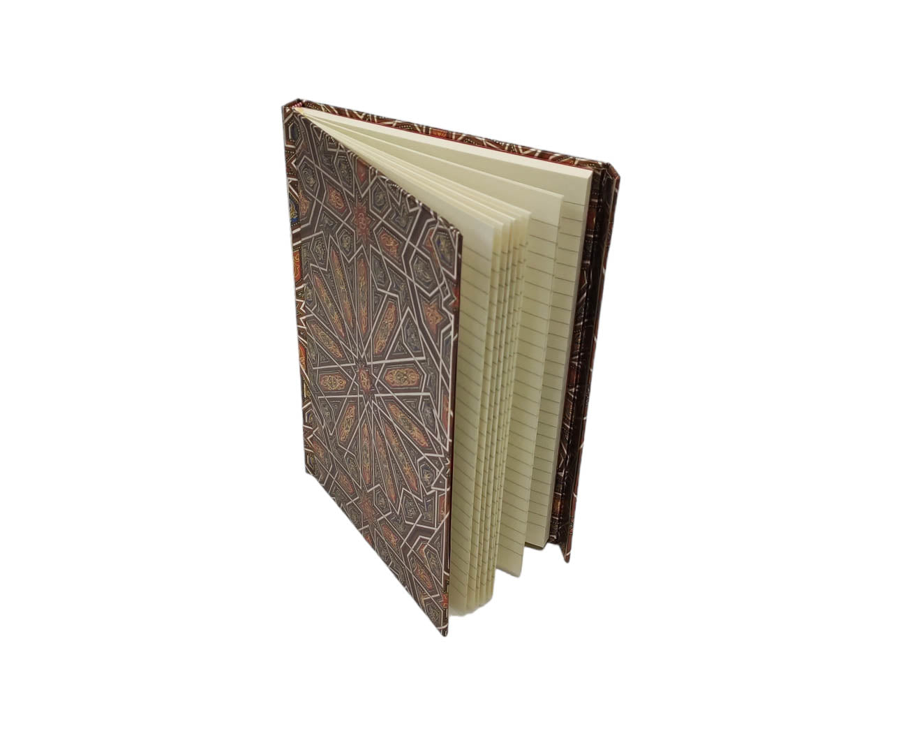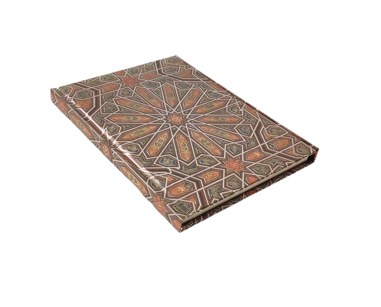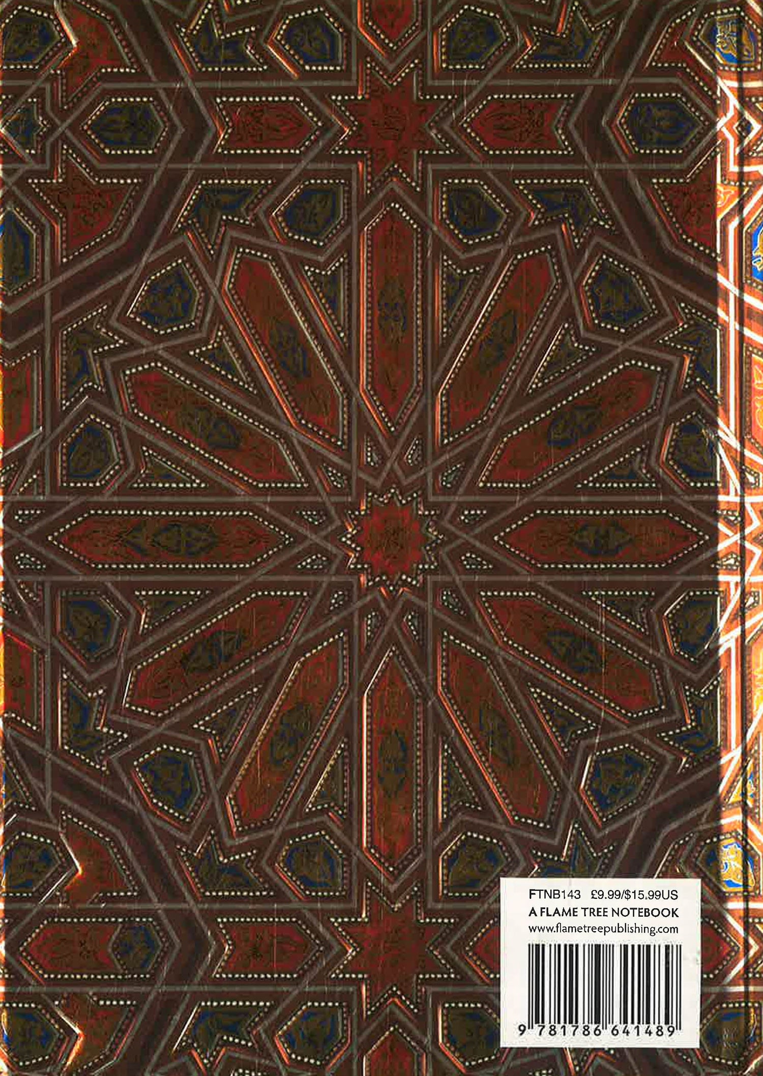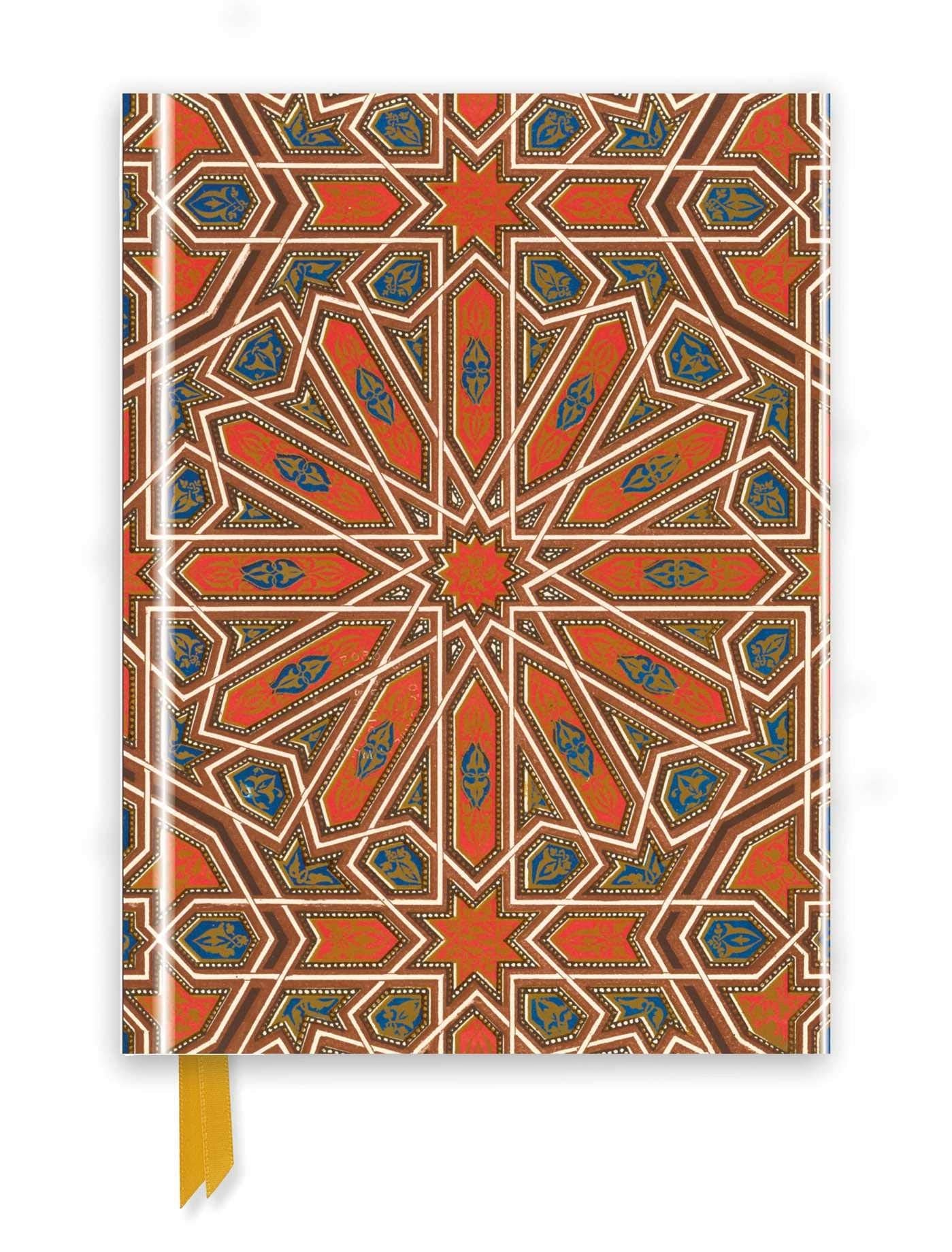 Part of a series of exciting and luxurious Flame Tree Notebooks. Combining high-quality production with magnificent fine art, the covers are printed on foil in five colours, embossed, then foil stamped. And they're powerfully practical: a pocket at the back for receipts and scraps, two bookmarks and a solid magnetic side flap. These are perfect for personal use and make a dazzling gift. This example features Owen Jones's Alhambra Ceiling