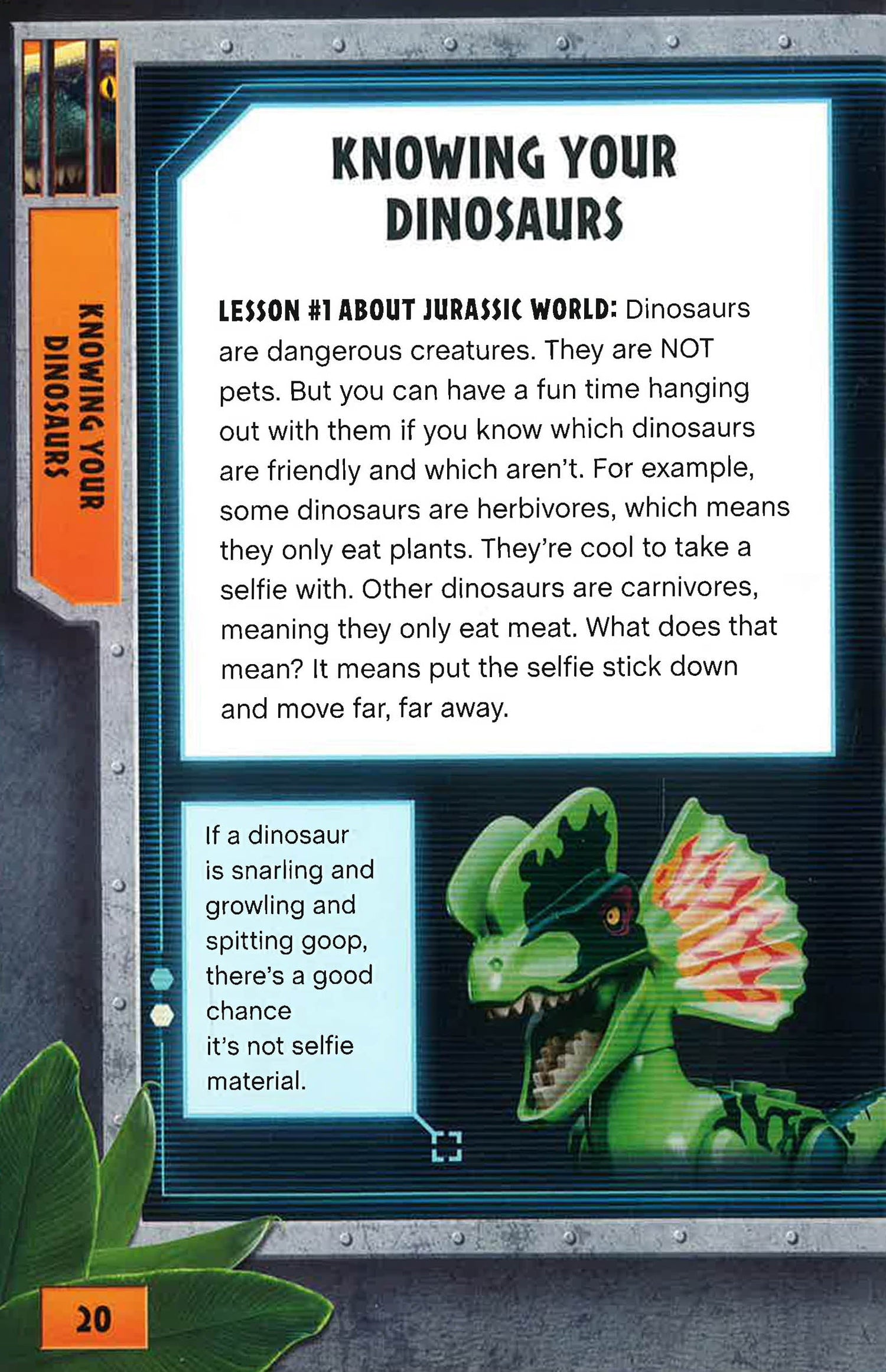 A guide from Owen's point of view, all about surviving Jurassic World and being a great dinosaur trainer! This funny guide features dinosaurs, characters, and locations from LEGO(R)Jurassic World, and is narrated by Owen himself. If you're looking to survive (and thrive) in LEGO Jurassic World, then this is the guide for you!