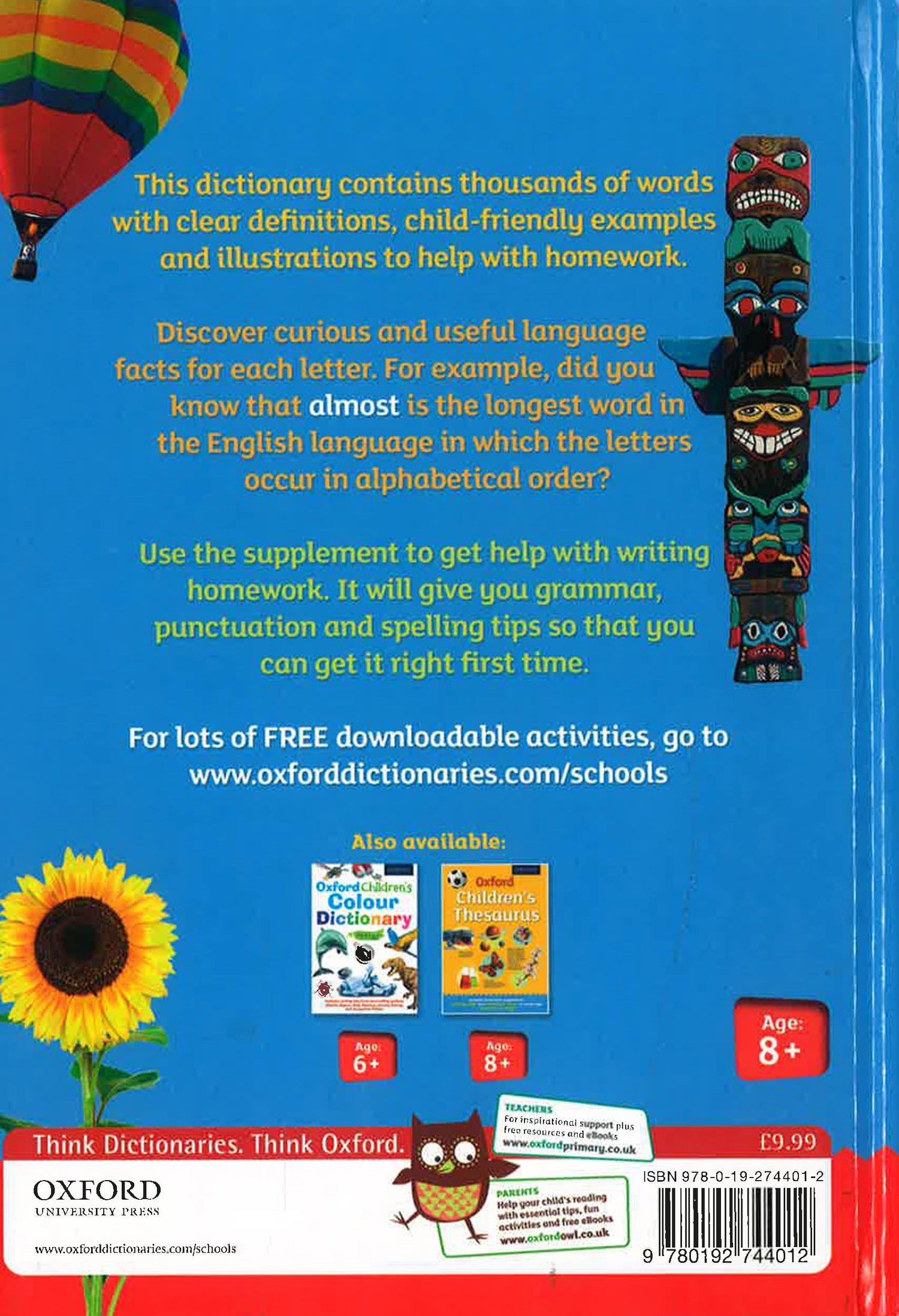Over 30,000 words, with clear and accessible meanings and age-appropriate example sentences, make this an ideal dictionary for helping children aged 8+ with homework. Each letter opens with a fun word fact and there are colour illustrations throughout. For example, did you know that 'almost' is one of the longest words with all the letters in alphabetical order? Compiled using the Oxford Children's Corpus, this new edition of the Oxford Children's Dictionary delivers support and help where it is needed. New to this edition is a supplement that gives top things to know about spelling, as well as about punctuation marks and how grammar can help make writing easy and effective.