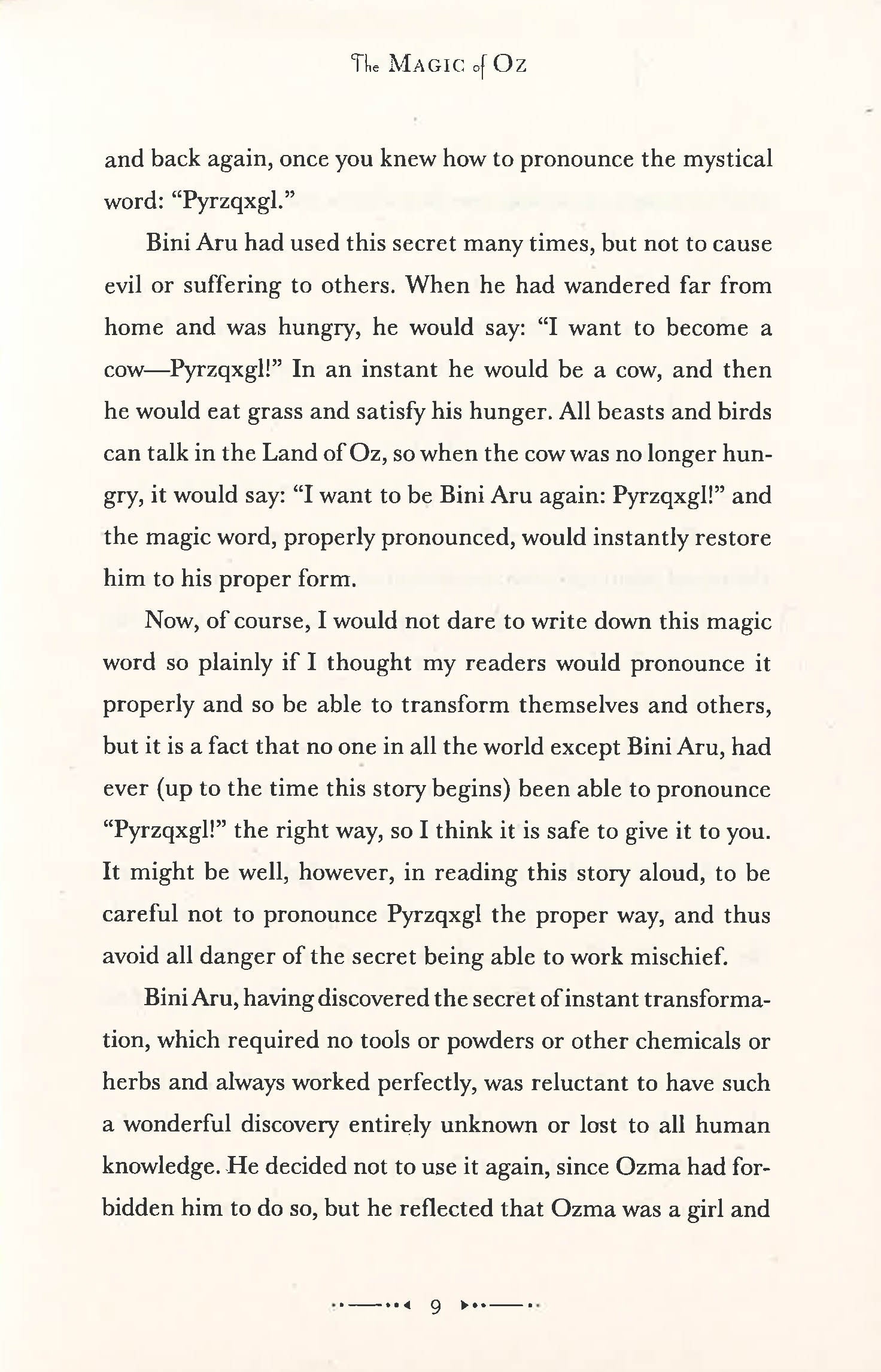 In The Magic of Oz, the mischievous Kiki Aru discovers a word that can transform him into whatever he wants. But Kiki has been recruited by the Nome King in his latest attempt to get revenge on Princess Ozma and all her friends. Will Kiki's incredible powers finally give the Nome King the victory he has craved for so long?