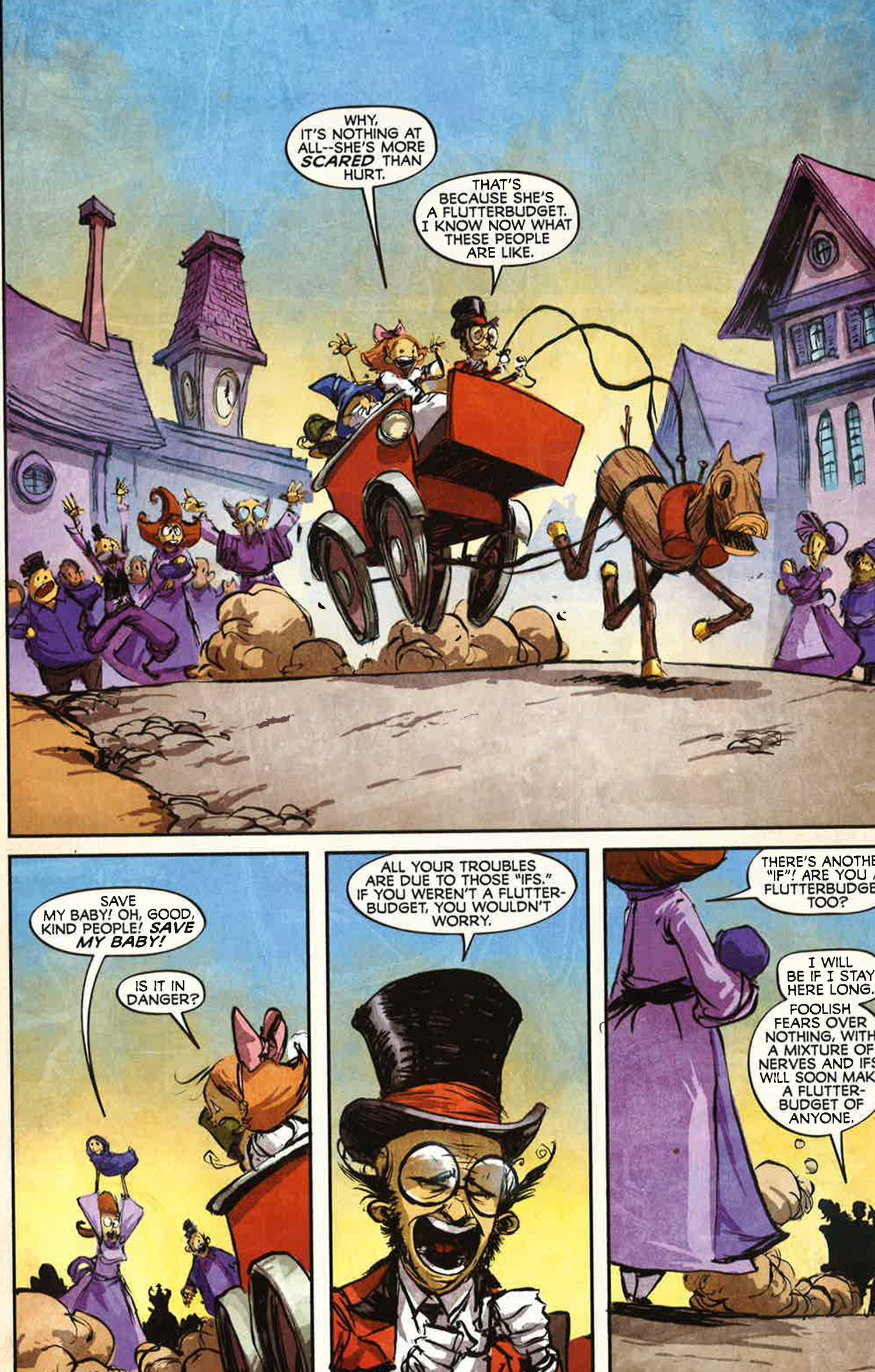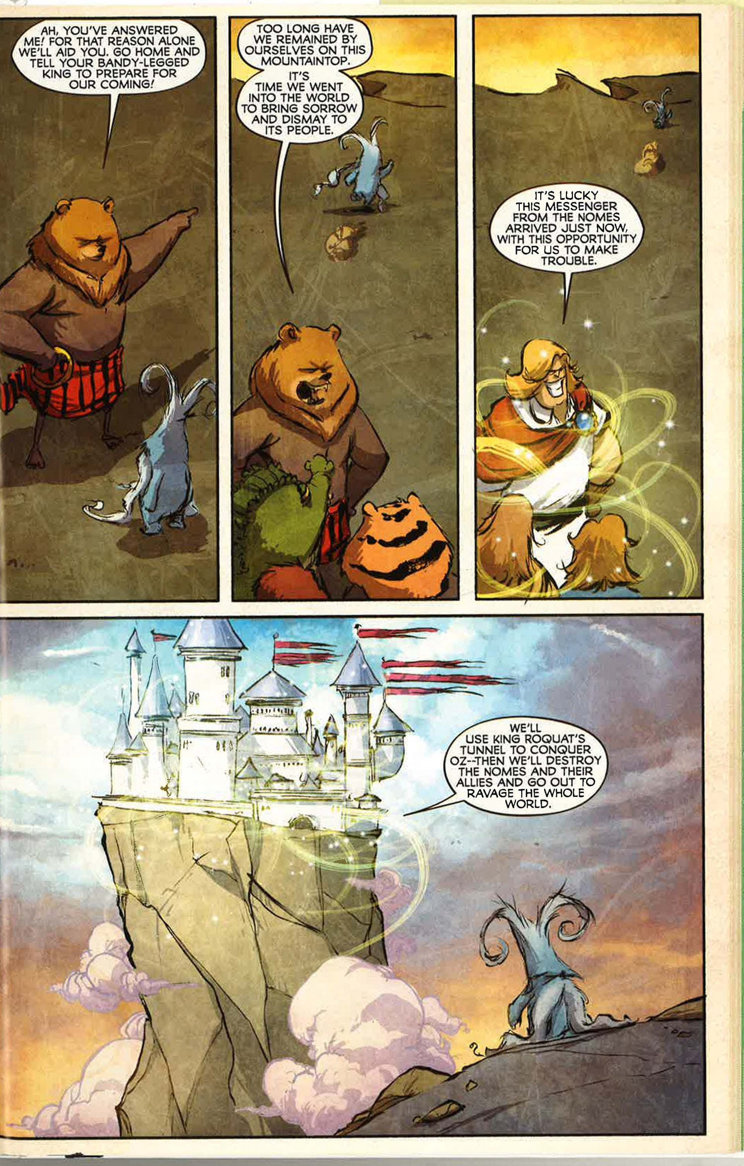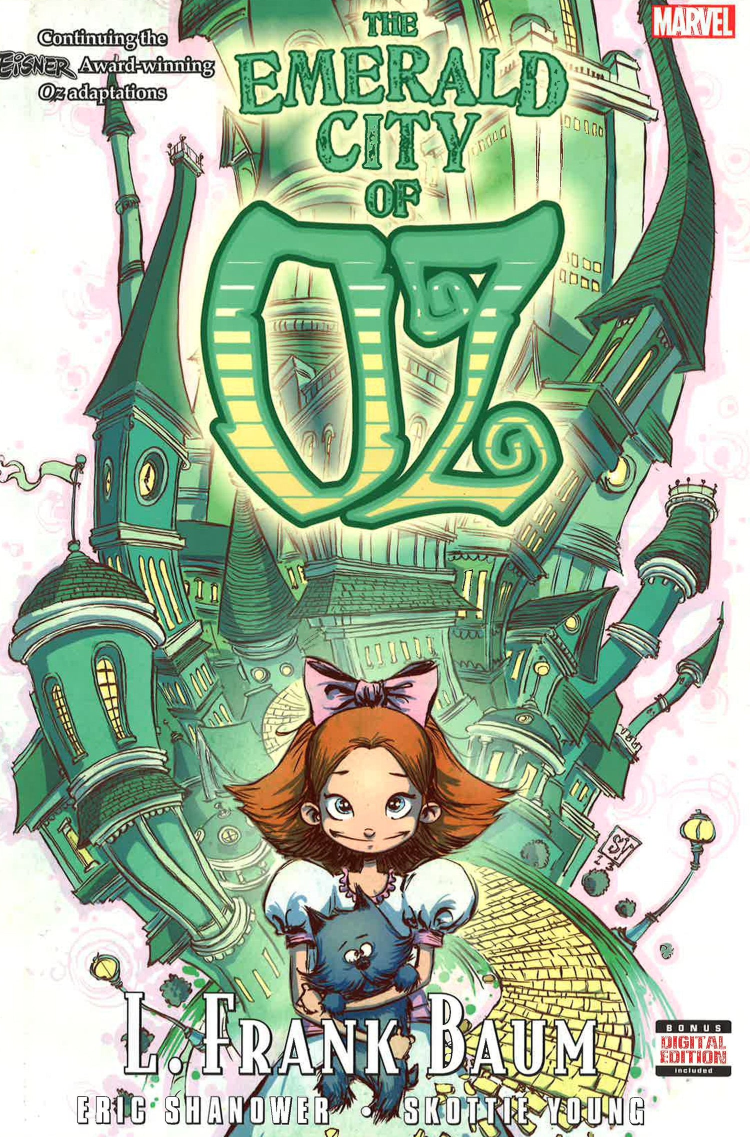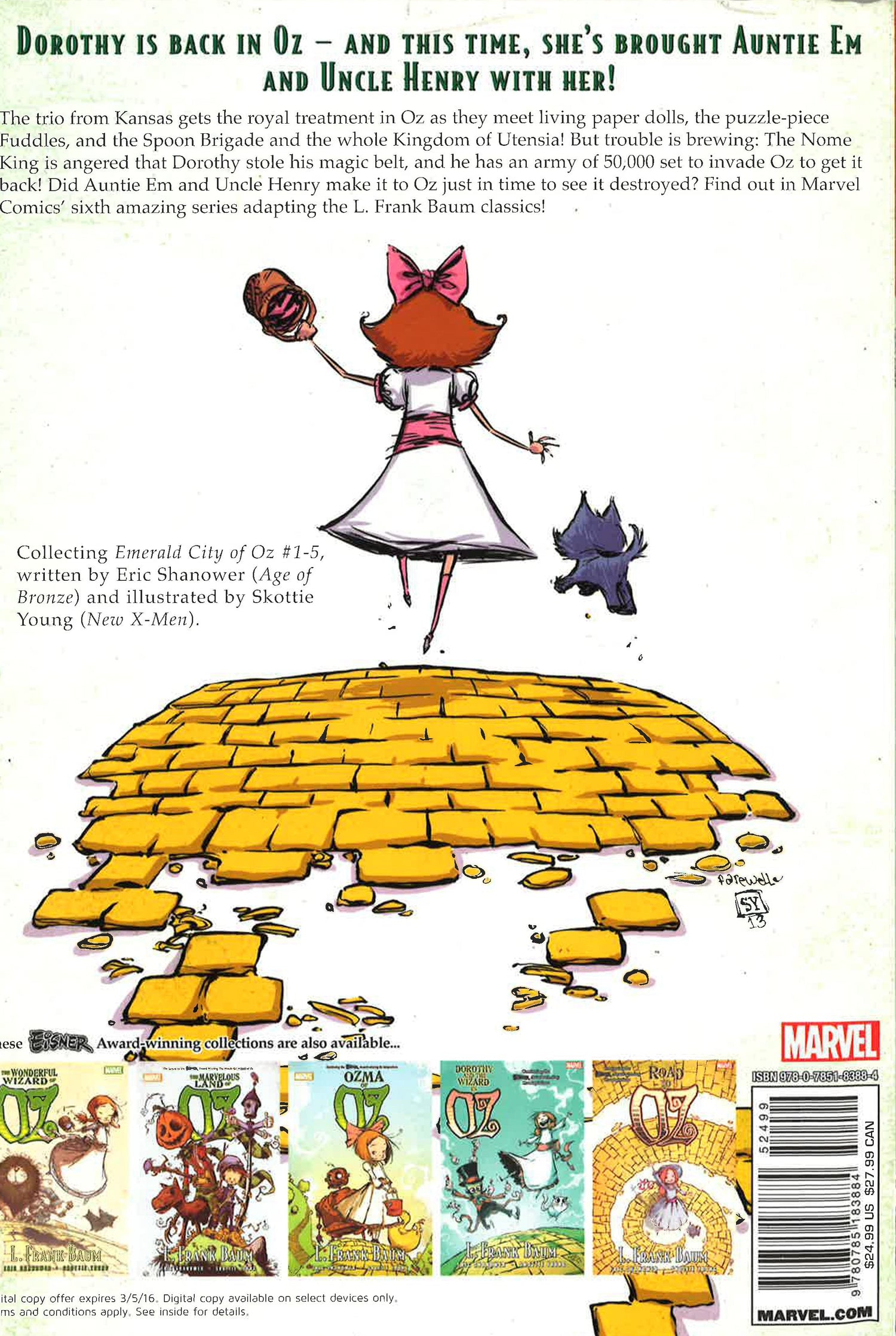 The Eisner Award-winning creative team of Eric Shanower and Skottie Young bring you the best Oz series yet! Uncle Henry can't pay the mortgage, so he, Aunt Em and Dorothy must leave their Kansas home. Where can they go? To the Land of Oz, of course! Dorothy and the Wizard take Em and Henry on a grand tour, discovering knowledge pills and living paper dolls, solving living puzzles, suffering abuse from living kitchen utensils and drooling over living baked goods - but will anyone in Oz be left living after the Nomes attack, allied with the highly disagreeable Growleywogs? And when General Guph persuades the most evil race alive - the shape-shift ing Phanfasms of Mt. Phantastico-to join the Nome Army, have the Nomes bitt en off more than they can chew? COLLECTING THE EMERALD CITY OF OZ 1-5