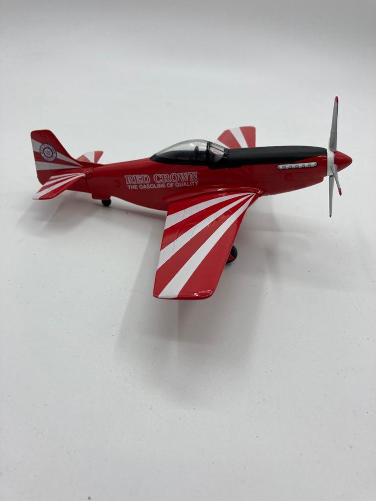 The P-51D Mustang, built by North American Aviation is a single seat, low wing monoplane powered by a Packard-built Rolls Royce engine. Although designed primarily as a fighter airplane, it may be equipped to carry bombs, chemical tanks, or rockets. Provision is also made to allow installation of external drop tanks to increase operating range. the airplane also has 6 50 caliber machine guns as standard equipment. Armor plate is installed in the cockpit area for protection. Note: As item is limited edition collection, the box may have minor scratches and faded colours.
