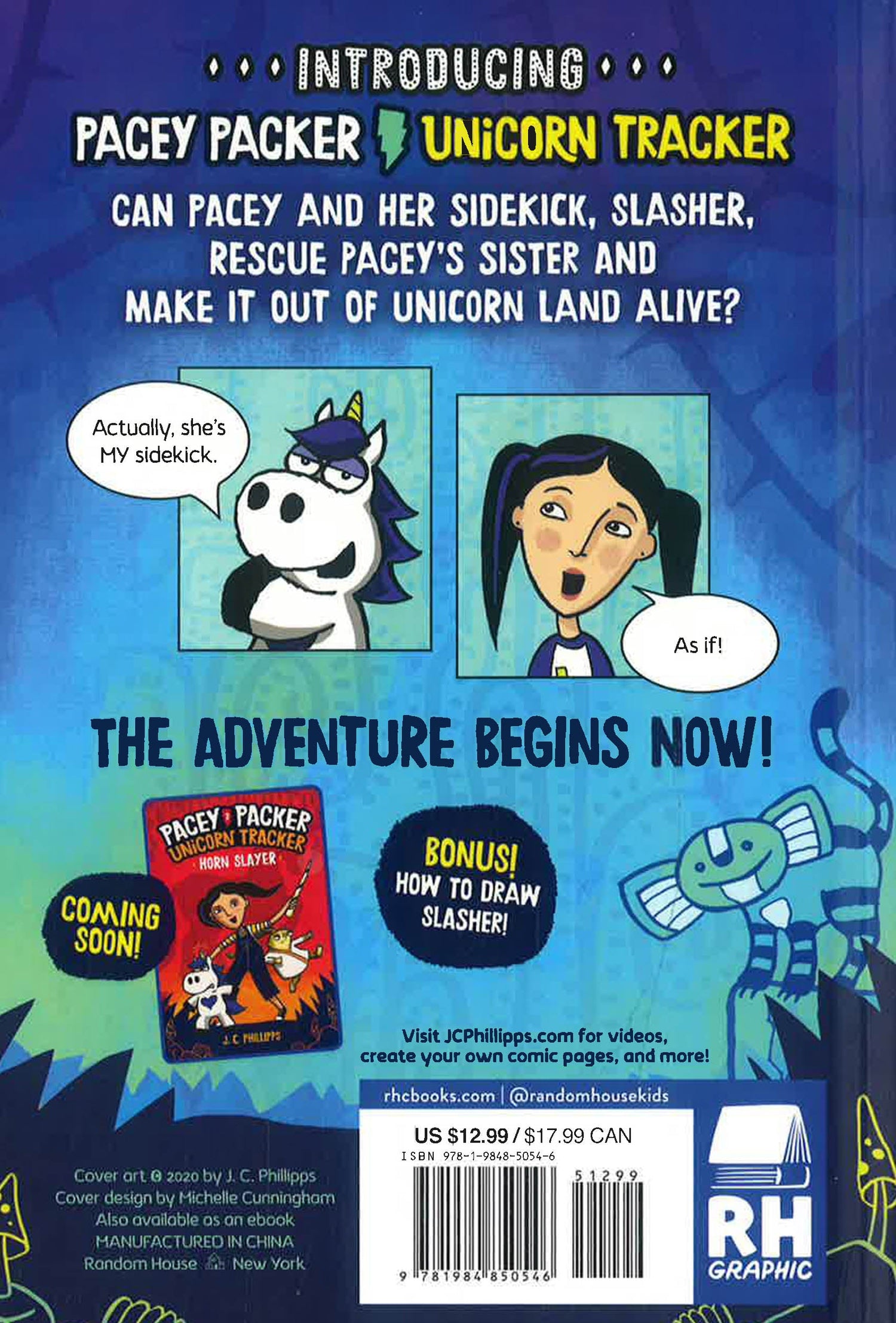Pacey's little sister, Mina, has always said her stuffed unicorn, Slasher, is real--but seriously? He's a stuffed toy! Then again, he does seem to be leading Mina outside her room and to . . . some kind of weird magical unicorn land? Pacey may not believe in unicorns, but she's not about to let her little sister be kidnapped, so she does the only thing she can: follows them to unicorn land (that she totally does NOT believe in). And for the record, it's NOTHING like the stories. First off, what's up with Slasher's attitude? It's not Pacey's fault he's trapped in a ridiculous stuffed body. And that Alpha Unicorn guy? NOT. Nice. Pacey will just be grabbing Mina and taking her home, thankyouverymuch . . . that is, if she can work with the grumpiest unicorn stuffy ever to outsmart the Evil Alpha Unicorn and find the way out--preferably without stepping on any poisonous killer flowers. (WHAT IS WITH THIS PLACE ANYWAY?!)