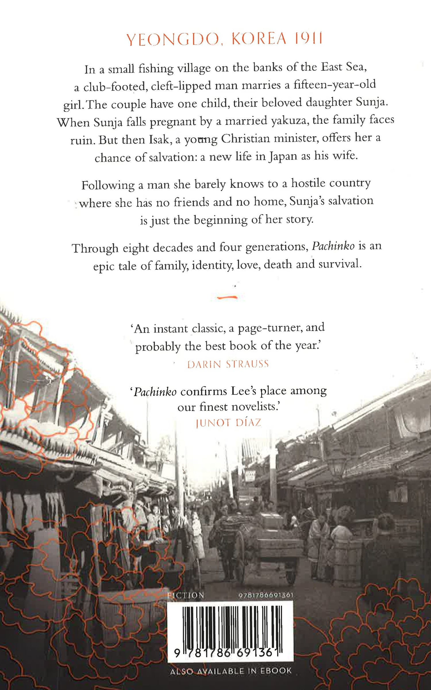 A victorian epic transplanted to Japan, following a Korean family of immigrants through eight decades and four generations. * The million-copy bestseller* * National Book Award finalist * * One of the New York Times's 10 Best Books of 2017 * * Selected for Emma Watson's Our Shared Shelf book club * 'This is a captivating book ... Min Jin Lee's novel takes us through four generations and each character's search for identity and success. It's a powerful story about resilience and compassion' BARACK OBAMA. Yeongdo, Korea 1911. In a small fishing village on the banks of the East Sea, a club-footed, cleft-lipped man marries a fifteen-year-old girl. The couple have one child, their beloved daughter Sunja. When Sunja falls pregnant by a married yakuza, the family face ruin. But then Isak, a Christian minister, offers her a chance of salvation: a new life in Japan as his wife. Following a man she barely knows to a hostile country in which she has no friends, no home, and whose language she cannot speak, Sunja's salvation is just the beginning of her story. Through eight decades and four generations, Pachinko is an epic tale of family, identity, love, death and survival.