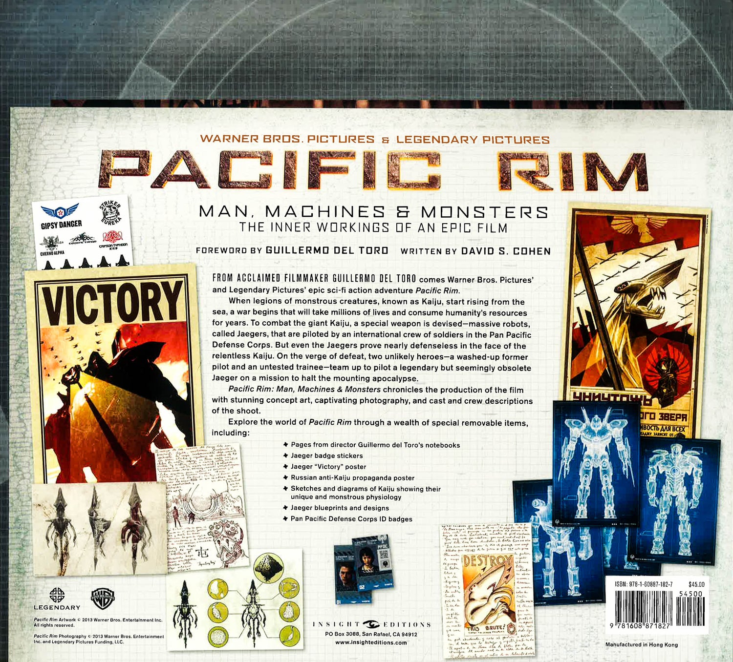 From acclaimed filmmaker Guillermo del Toro comes Warner Bros. Pictures' and Legendary Pictures' epic sci-fi action adventure Pacific Rim. When legions of monstrous creatures, known as Kaiju, started rising from the sea, a war began that would take millions of lives and consume humanity's resources for years. To combat the giant Kaiju, a special weapon was devised: massive robots, called Jaegers, which are piloted by an international crew of soldiers in the Pan Pacific Defense Corps. But even the Jaegers are proving nearly defenseless in the face of the relentless Kaiju. On the verge of defeat, two unlikely heroes—a washed up former pilot and an untested trainee—team up to pilot a legendary but seemingly obsolete Jaeger on a mission to halt the mounting apocalypse. Pacific Rim: Man, Machines & Monsters chronicles the production of the film with stunning concept art, captivating photography, and cast and crew descriptions of the shoot.