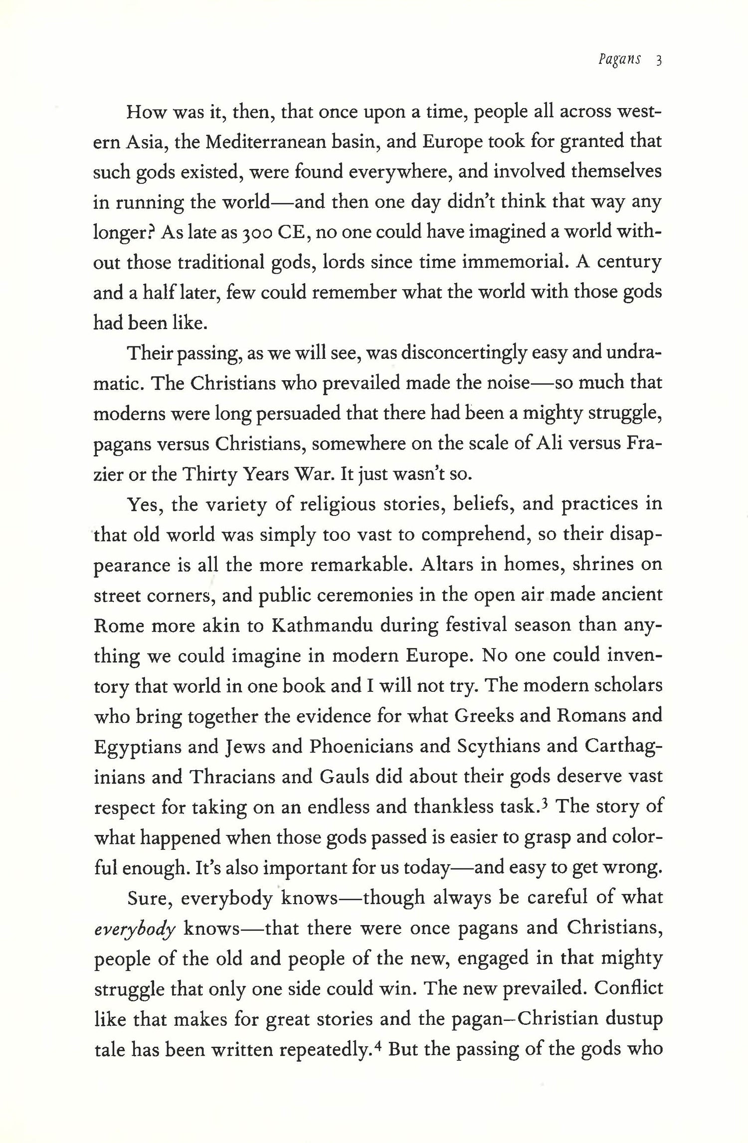 Pagans explores the rise of Christianity from a surprising and unique viewpoint: that of the people who witnessed their ways of life destroyed by what seemed then a powerful religious cult. These “pagans” were actually pious Greeks, Romans, Syrians, and Gauls who observed the traditions of their ancestors. To these devout polytheists, Christians who worshipped only one deity were immoral atheists who believed that a splash of water on the deathbed could erase a lifetime of sin.