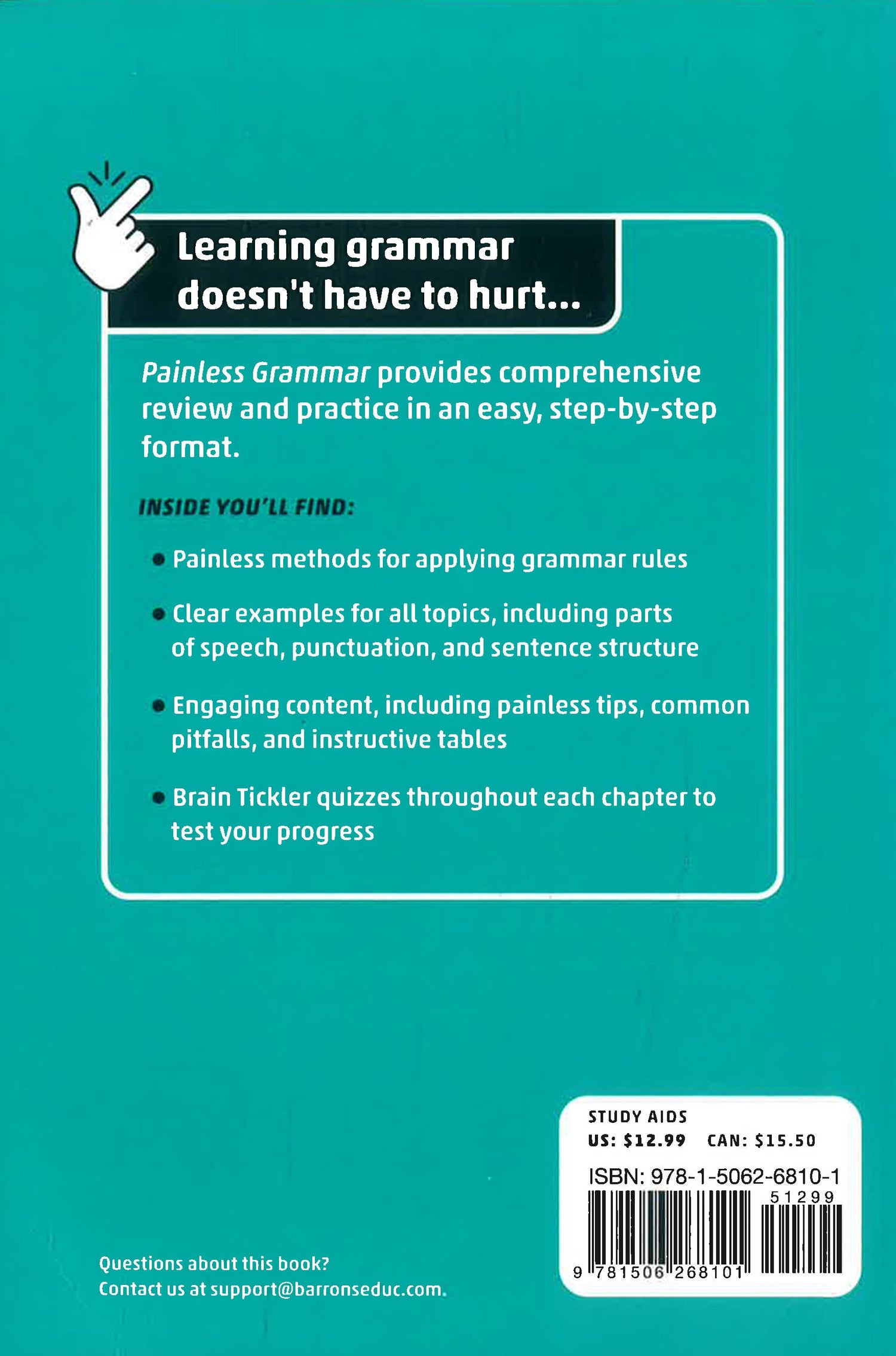 Whether you’re a student or an adult looking to refresh your knowledge, Barron’s Painless Grammar provides review and practice in an easy, step-by-step format.