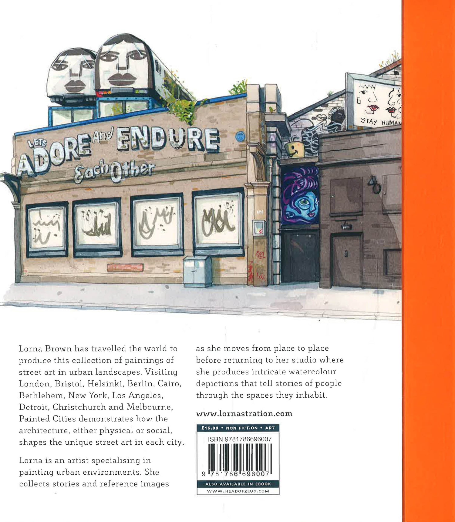 Lorna Brown is an artist specialising in watercolour architectural paintings that represent something other than just bricks and mortar. With a keenness for adventure, she likes to hunt for new places to paint; buildings with character and story that represent the people who have occupied these spaces in the past, present and future. Lorna has travelled around the world to produce this collection of illustrations of street art in urban landscapes. Visiting London, Bristol, Helsinki, Berlin, Cairo, Bethlehem, New York, Los Angeles, Detroit, Christchurch, Melbourne, Painted Cities demonstrates how the architecture shapes the unique street art in each city and tells the story of the painters and people who live there.