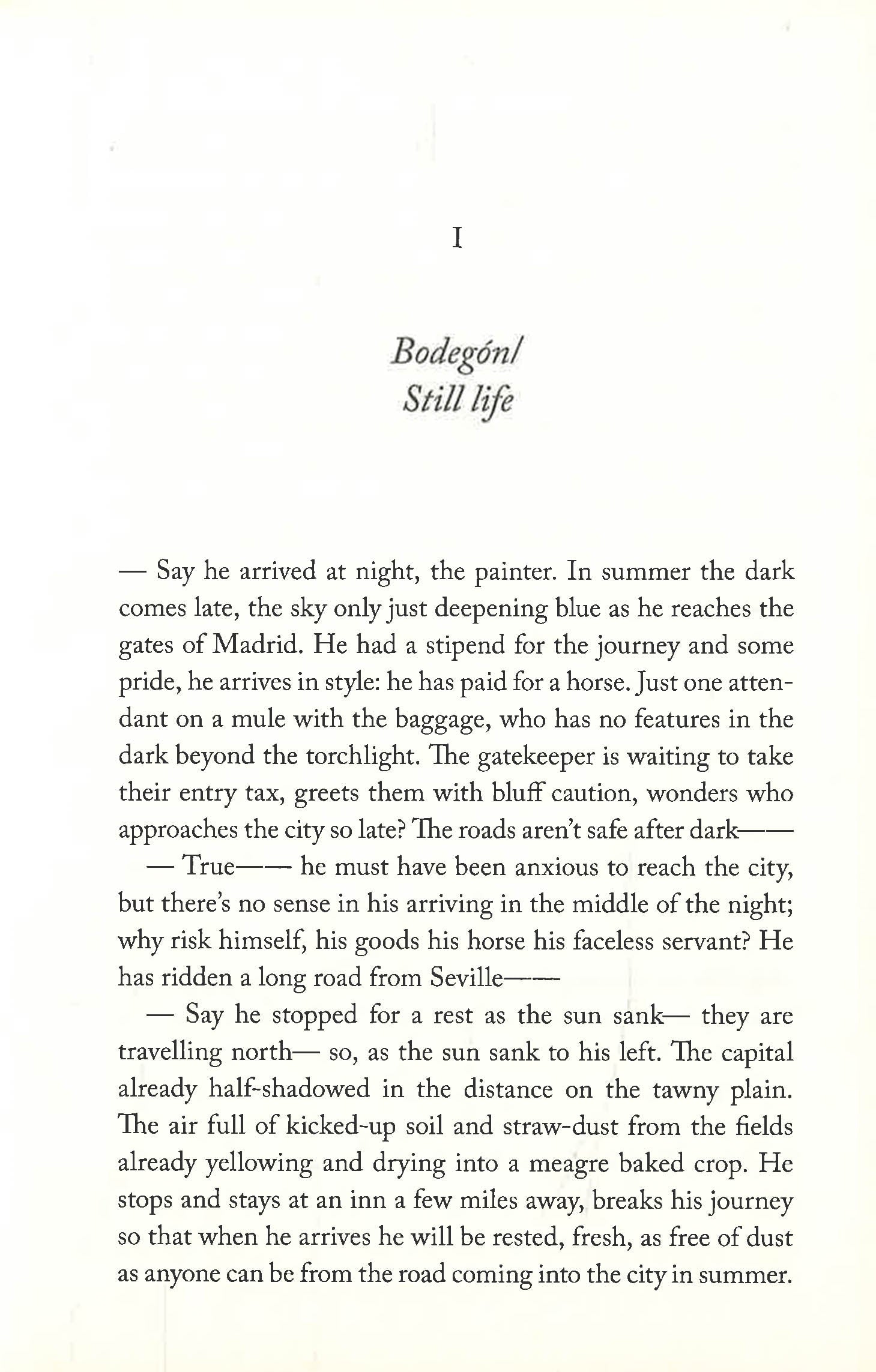 This is a portrait of Diego Velázquez, from his arrival at the court of King Philip IV of Spain, to his death 38 years and scores of paintings later. It is a portrait of a relationship that is not quite a friendship, between an artist and his subject. It is a portrait of a ruler, always on duty, and increasingly burdened by a life of public expectation and repeated private grief. And it is a portrait of a court collapsing under the weight of its own excess. Unfolding through series of masterly set-pieces and glancing sketches, this is a novel of brilliance, imagination and sheer style -- about what is shown and what is seen, about art and life.