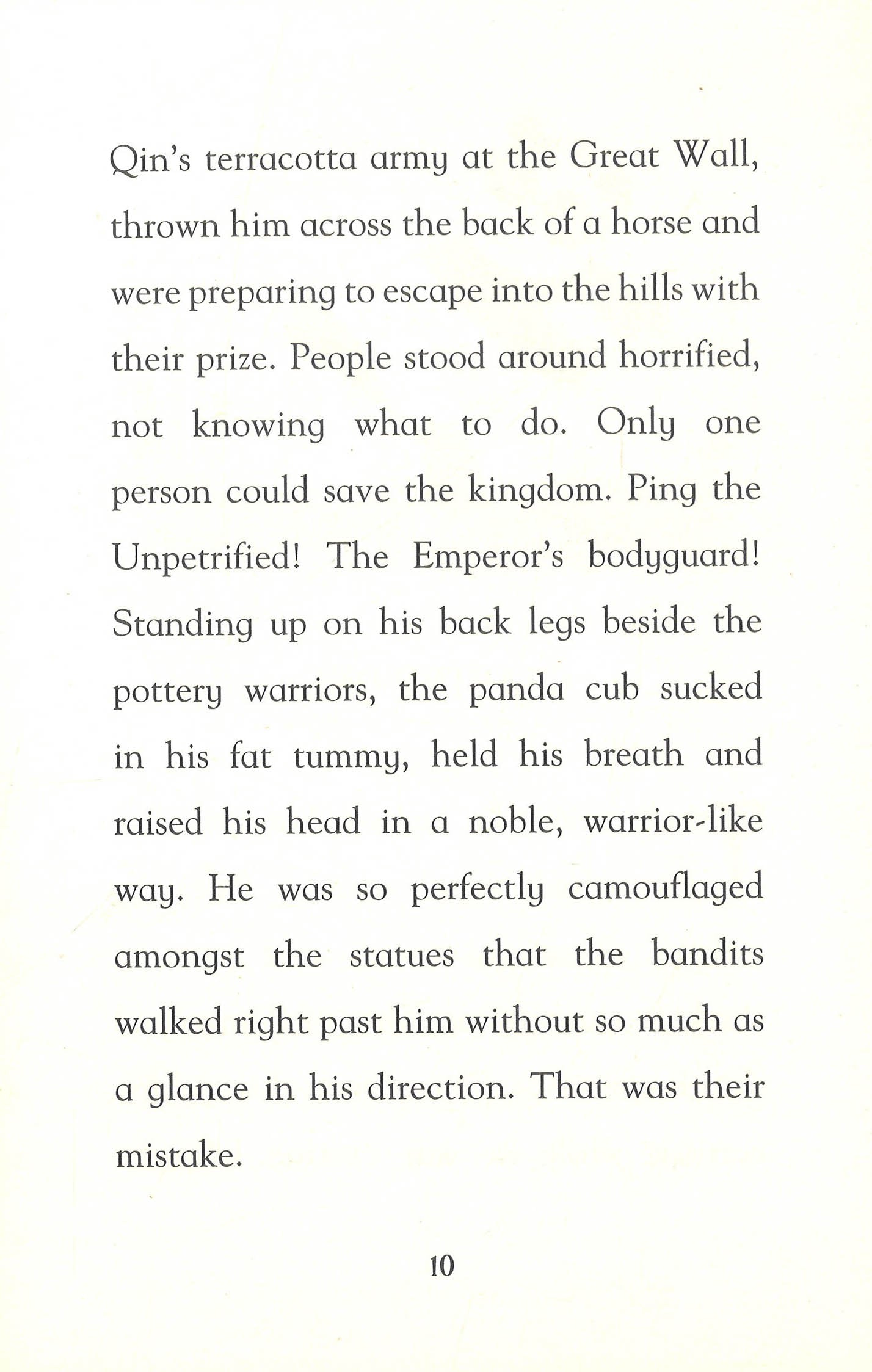 The second hilarious Panda Panic story in the fantastic new AWESOME ANIMALS series - awesome adventures with the wildest wildlife, from award-winning authors. Ping the panda lives with his mum and twin sister on the Wolong nature reserve in China. Although his name means 'peaceful' he's anything but! Ping craves adventure and excitement but unfortunately he is a panda...and pandas do pretty much nothing except eat bamboo. But when Ping gets swept off down the river, he at last finds the adventure he's been waiting for. Will Ping and his new friend Little Bear enjoy their freedom, or will the shadows, and the bandits, and the lurking snow leopards have them running for home-sweet-home?