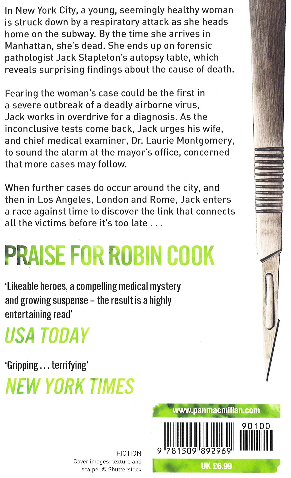Pandemic is an explosive medical thriller from New York Times-bestselling author Robin Cook.In New York City, a young, seemingly healthy woman is struck down by a respiratory attack as she heads home on the subway. By the time she arrives in Manhattan, she's dead. She ends up on forensic pathologist Jack Stapleton's autopsy table, which reveals surprising findings about the cause of death.Fearing the woman's case could be the first in a severe outbreak of a deadly airborne virus, Jack works in overdrive for a diagnosis. As the inconclusive tests come back, Jack urges his wife, and chief medical examiner, Dr. Laurie Montgomery, to sound the alarm at the mayor's office, concerned that more cases may follow.When further cases do occur around the city, and then in Los Angeles, London and Rome, Jack enters a race against time to discover the link that connects all the victims before it's too late . . .