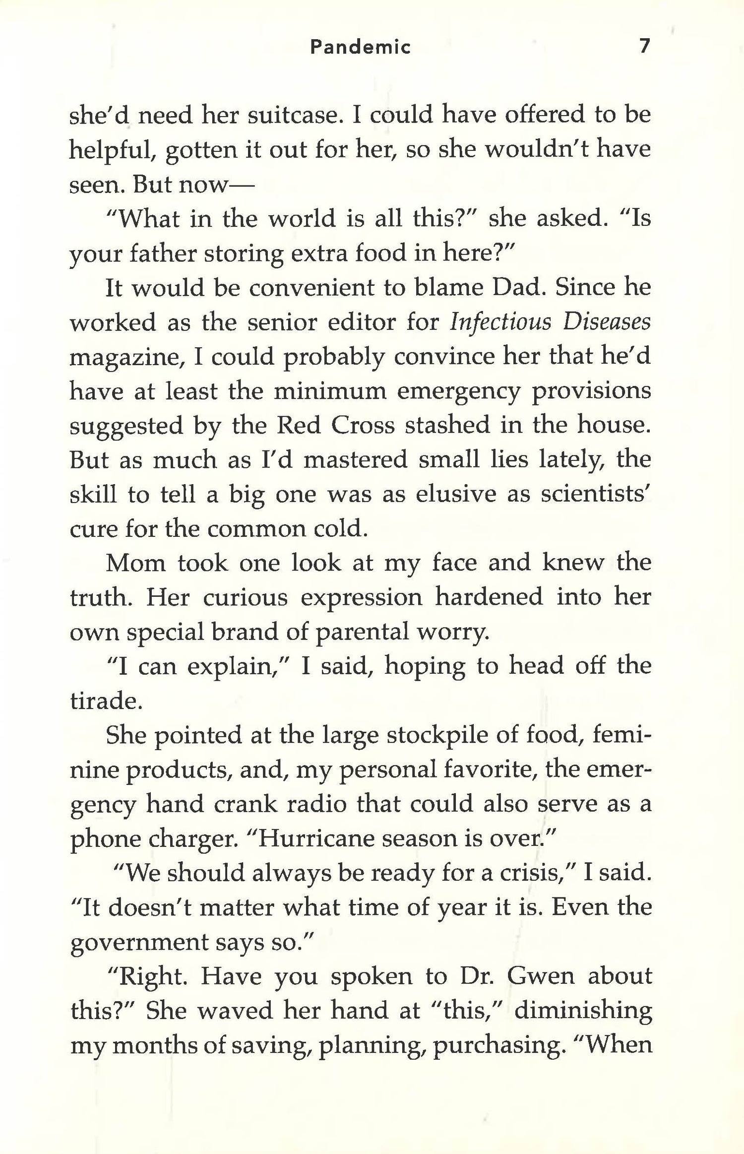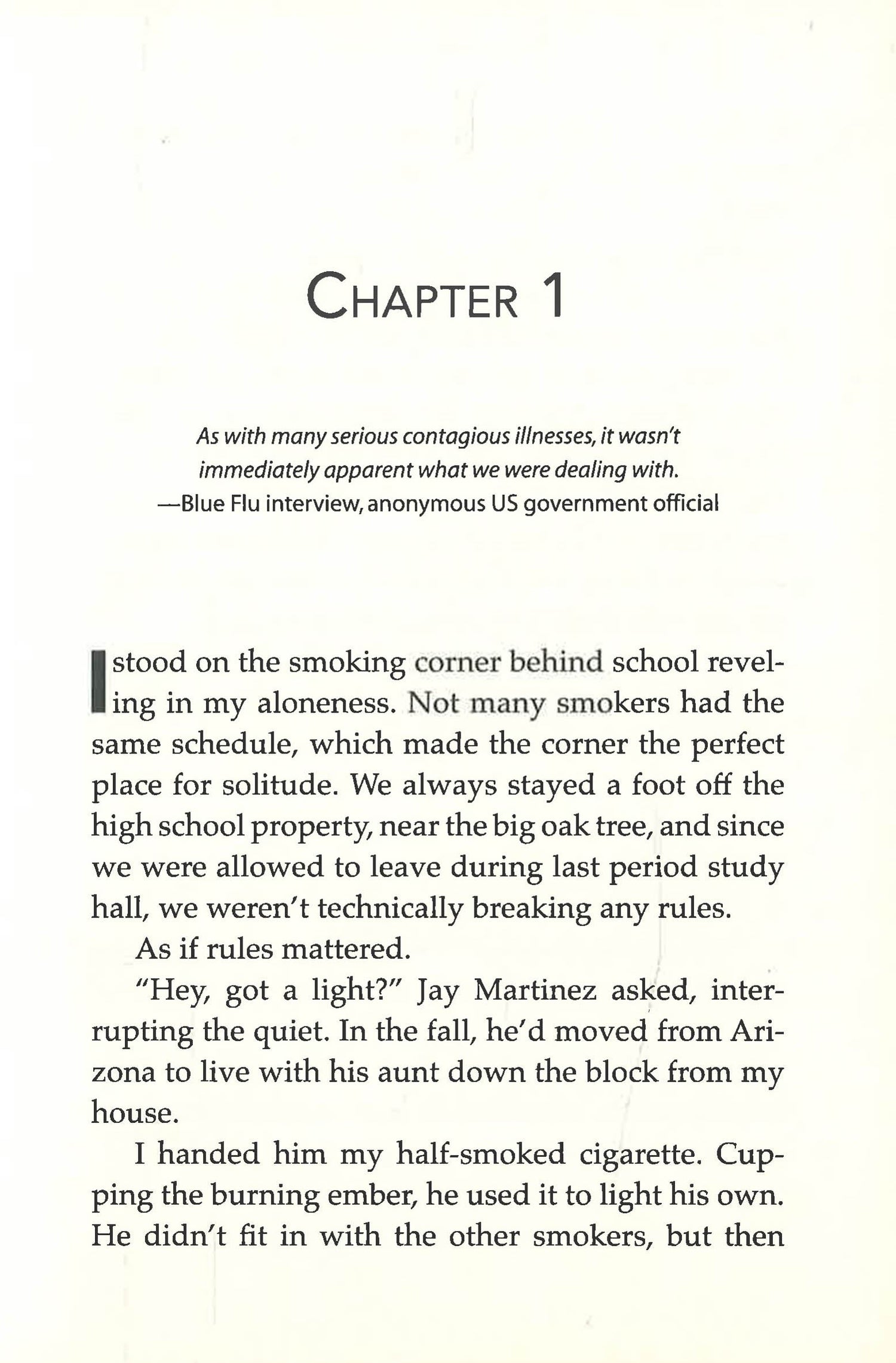 Even under the most normal circumstances, high school can be a painful and confusing time. Unfortunately, Lilianna's circumstances are anything but normal. Only a few people know what caused her sudden change from model student to the withdrawn pessimist she has become, but her situation isn't about to get any better. When people begin coming down with a quick-spreading illness that doctors are unable to treat, Lil's worst fears are realized. With her parents called away on business before the contagious outbreak her father in Delaware covering the early stages of the disease and her mother in Hong Kong and unable to get a flight back to New Jersey Lil's town is hit by what soon becomes a widespread illness and fatal disaster. Now, she's more alone than she's been since the "incident" at her school months ago.