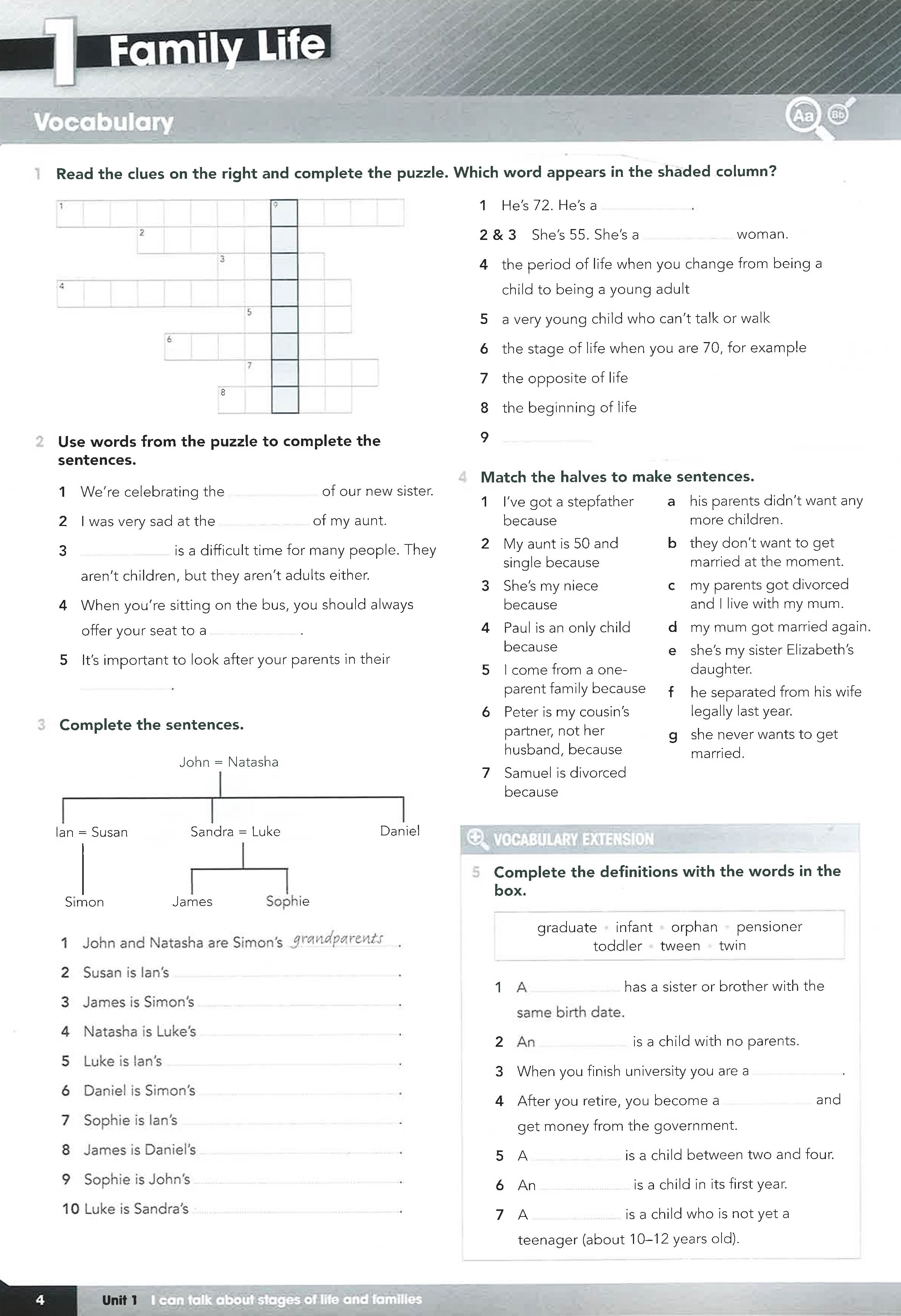 The Workbook mirrors the Student's Book in its organisation, providing a wealth of extra grammar and vocabulary exercises and opportunities to practise reading, listening, speaking and writing. It also offers higher-level material in the form of Grammar challenge and Vocabulary extension exercises, particularly useful for mixed ability classes.