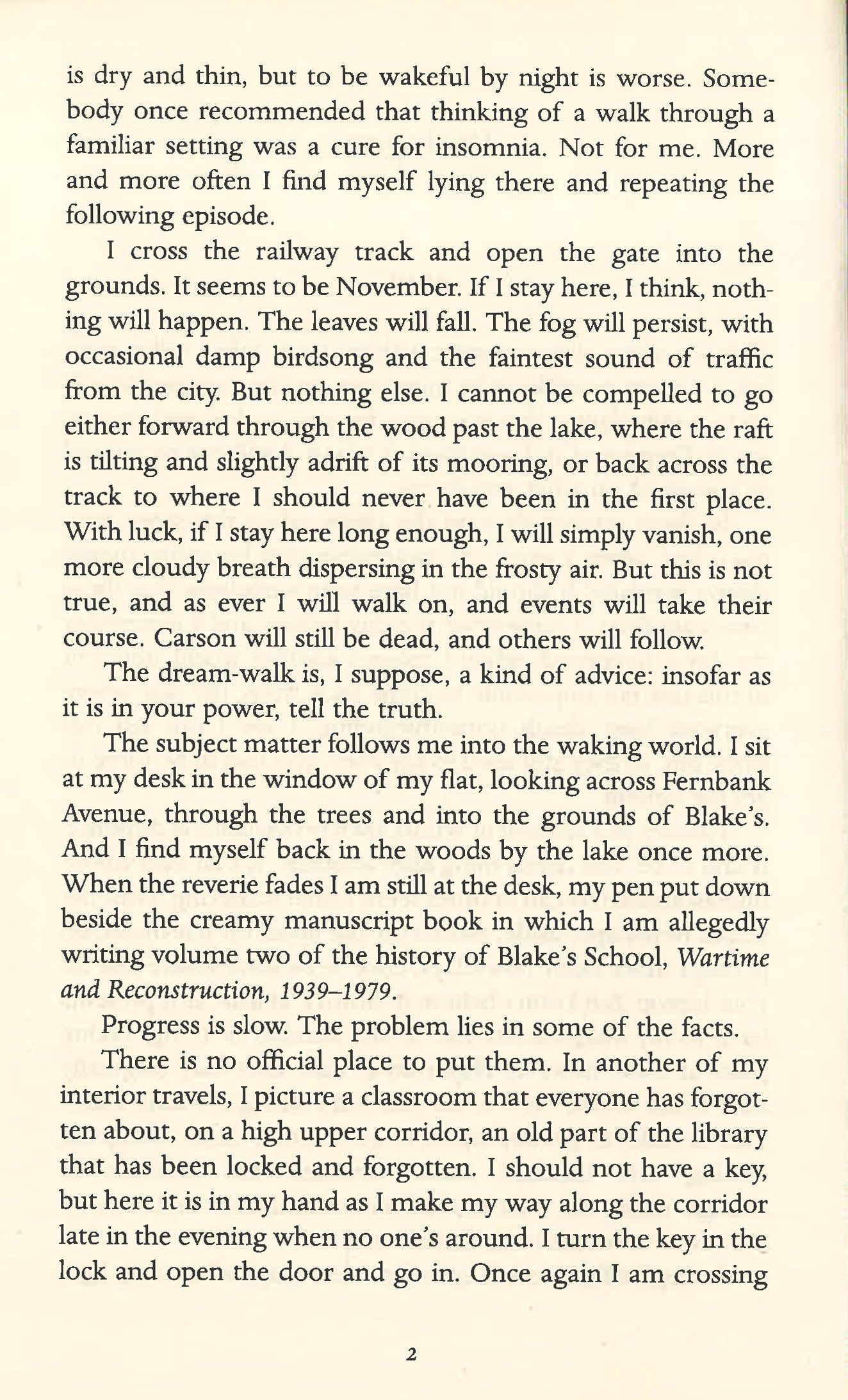 Stephen Maxwell has just retired from a lifetime spent teaching history at his alma mater. As he writes the official history of Blake's, a minor public school steeped in military tradition, he also reveals how, forty years ago, a secret conflict dating from the Second World War re-enacted itself among staff and pupils, when fascism once more made its presence felt in the school and the city, with violent and nightmarish results.