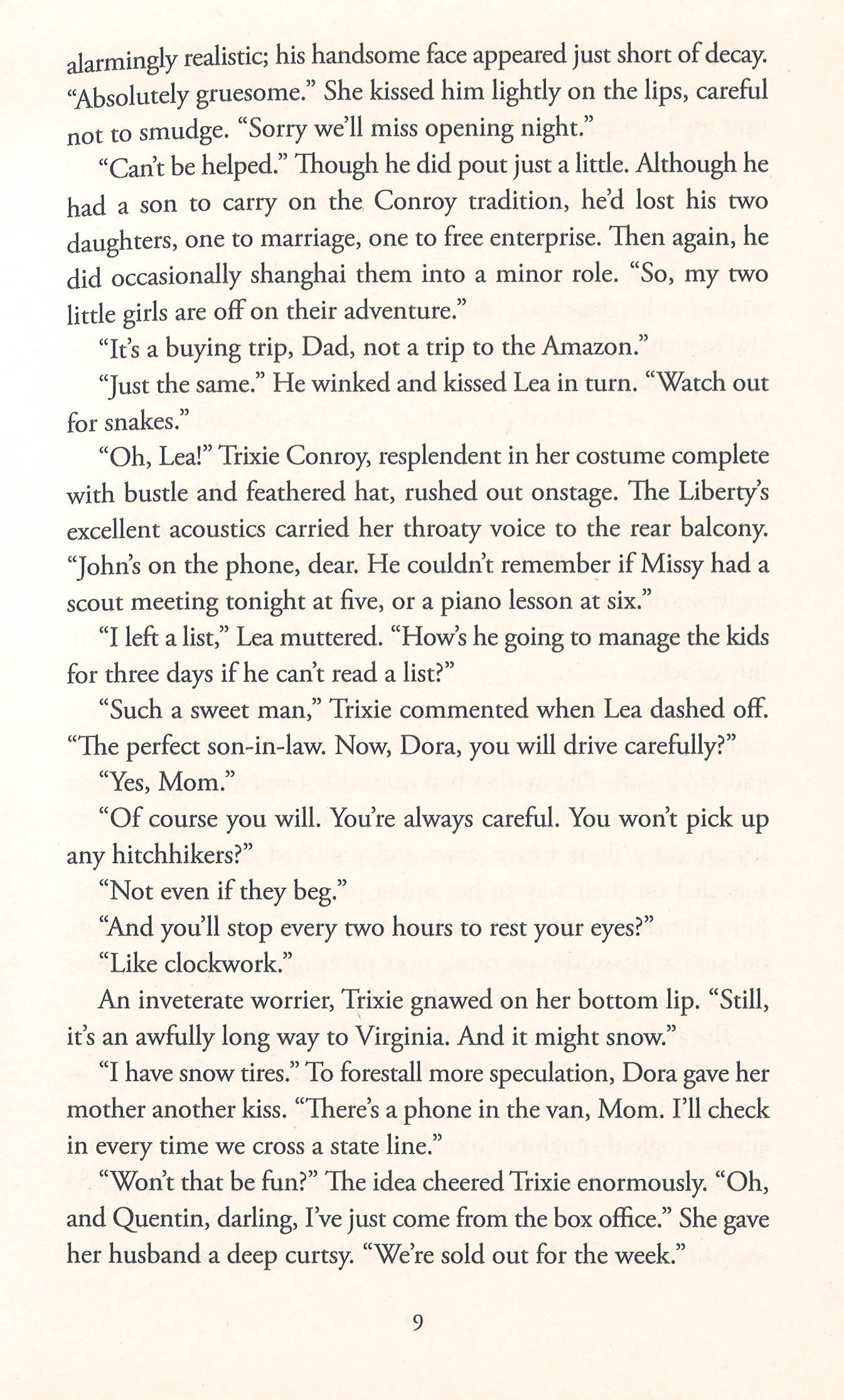 Creative and spontaneous, antiques dealer Dora Conroy has an infectious enthusiasm for life. She also has an eye for quality, and her gorgeous shop in Philadelphia is overflowing with fascinating finds. But when - on impulse - she buys a few curiosities at auction, she gets a lot more than she bargained for. Because Dora doesn't realise she has brought home a priceless cache of treasure: a collection that one ruthless criminal is determined to make his own - whatever the cost . . .