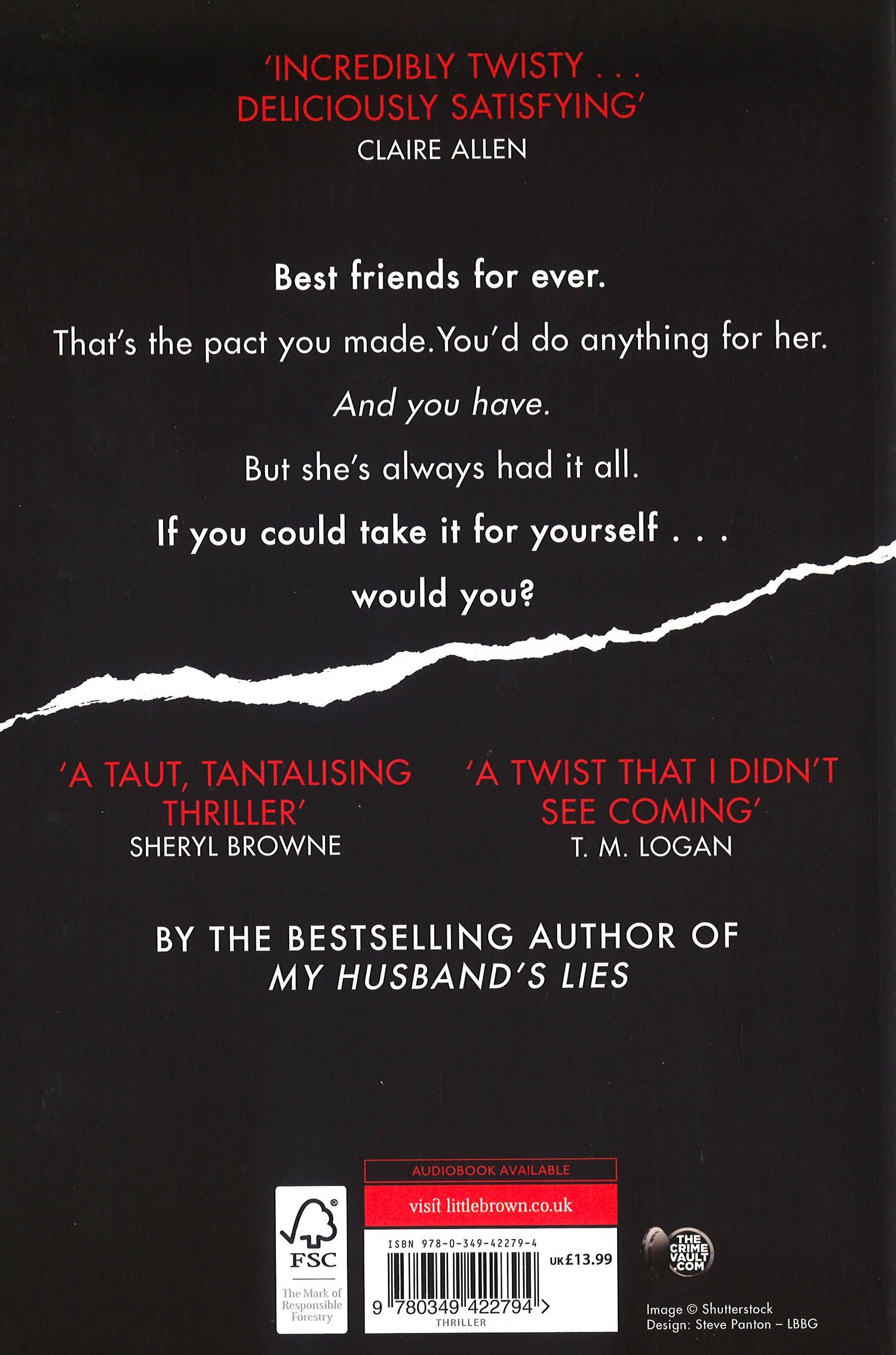 A twist that I didn't see coming!' T. M. LOGAN'Kept me gripped' B. A. PARIS'Incredibly twisty . . . deliciously satisfying' CLAIRE ALLAN'A taut, tantalising thriller' SHERYL BROWNE'Truly terrific!' MARTINA COLE_______________Best friends forever.That's the pact you made.You'd do anything for her.And you have.She's always had it all.If you could take it for yourself . . . would you?_______________Lust, secrets and revenge are at the heart of this irresistibly twisted thriller by the bestselling author of My Husband's Lies. Perfect for fans of Claire McGowan's The Other Wife and Adele Parks's Lies Lies Lies. What readers are saying about Betray Her:'Wow! This kept me gripped right up until the last page!!' NetGalley reviewer, 5 stars'Utterly fantastic. Sooo gripping and addictive' NetGalley reviewer, 5 stars'Was blown away . . . what a book' NetGalley reviewer, 5 stars'A very good twist that I was not expecting. Really had me hooked' NetGalley reviewer, 5 stars'Wow . . . Completely gripping, you wont be able to put it down!' NetGalley reviewer'Grabbed my attention and didn't let go till the shocking twist at the end' NetGalley reviewer, 5 stars'I flew through this one and the ending had me shaken! Wonderful book!' NetGalley reviewer'I absolutely thought that this was a fabulous read' NetGalley reviewer, 5 stars'A great twist that I absolutely didn't see coming' NetGalley reviewer'I was on the edge of my seat from the first page right up until the breathtaking finale' NetGalley reviewer'A real page turner' NetGalley reviewer, 5 stars'I was gripped from the very first page' NetGalley reviewer, 5 stars