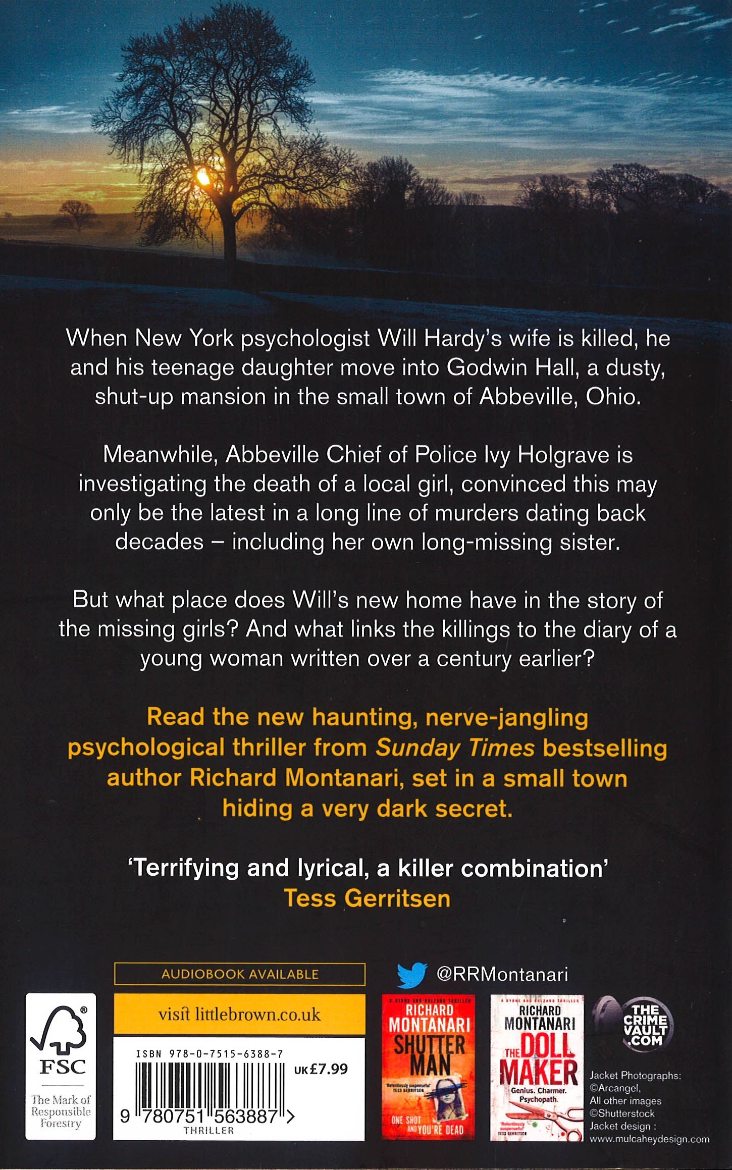 Glittering and sharp, an ice pick of a novel. An astounding talent'AJ Finn, author of The Woman in the WindowA haunting, nerve-jangling psychological thriller from Sunday Times bestselling author Richard Montanari set in a small town hiding a very dark secret.When New York psychologist Will Hardy's wife is killed, he and his teenage daughter Bernadette move into Godwin Hall, a dusty, shut-up mansion in the small town of Abbeville, Ohio.Meanwhile, Abbeville Chief of Police Ivy Holgrave is investigating the death of a local girl, convinced this may only be the latest in a long line of murders dating back decades - including her own long-missing sister.But what place does Will's new home have in the story of the missing girls? And what links the killings to the diary of a young woman written over a century earlier?Praise for Richard Montanari'A relentlessly suspenseful, soul-chilling thriller that hooks you instantly'Tess Gerritsen'You turn the pages as if your very life depends on it'Daily Mail'The author's elegiac tone takes the curse off this blood-drenched thriller . . . Gripping'New York Times (the 10 best crime novels of 2016)'A master storyteller'James Ellroy'Scary good!'Lisa Gardner'Taut, propulsive and darkly gripping, Montanari is a master of suspense'Chris Ewan'A specialist in serial killer tales . . . a wonderfully evocative writer'Publishers WeeklyAmazon readers love Richard Montanari***** 'One of the best detective stories I have ever read'***** 'If you haven't read these books yet.... START READING THEM!'***** 'Great plot and incredible pace. A real page turner'***** 'I couldn't put it down - utterly absorbing and compelling!!'***** 'The last 20 pages had me biting my nails and sitting on the edge of my chair!'***** 'Absolutely brilliant - almost impossible to put down'***** 'Every once and while I read a classic which I'll NEVER forget.This is a book I'll never forget'***** 'This is a chillingly good read with a fast-paced storyline full of twists and turns'***** 'From start to finish, you never want to stop! You have to know what happened!'***** 'An outstanding tale with as many twists as a game of snakes and ladders'***** 'One of the best crime/thriller writers'***** 'Amazing'***** 'Richard Montanari never lets you down. The ending is always a surprise'***** 'So easy to pick up, so hard to put down'