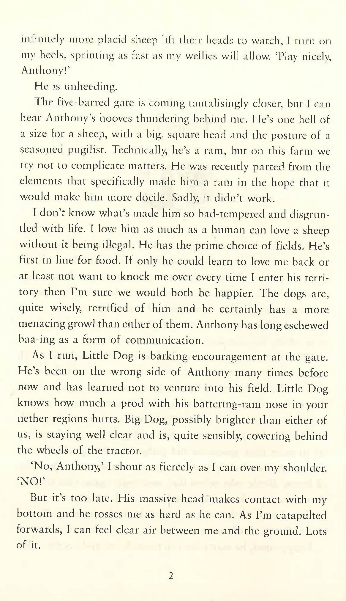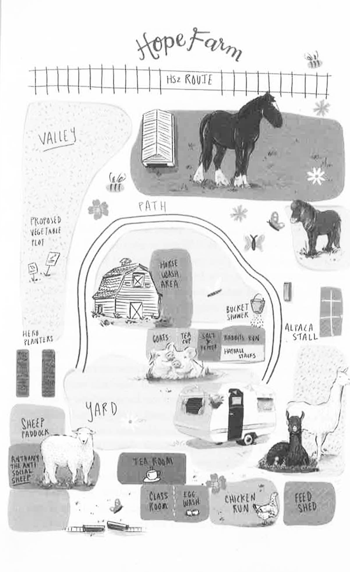 Thirty-eight years old, she lives on the twenty-five-acre Hope Farm in Buckinghamshire, surrounded by (mostly) four-legged friends and rolling hills. There's Anthony the anti-social sheep, Tina Turner the alpaca with attitude, and the definitely-not-miniature pig, Teacup.