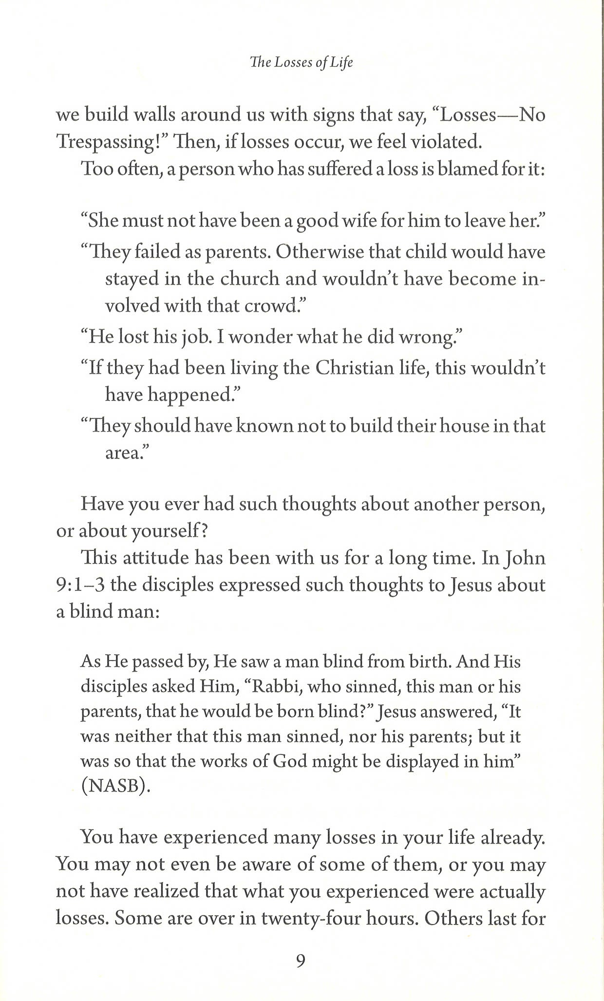Life is marked by losses, some subtle, some life-changing. Writing from his own experience and expertise, certified trauma expert and bestselling author H. Norman Wright shows you how to work through loss and come out a stronger person on the other side. He tackles tough issues like the meaning of grief, blaming God, and learning how to express yourself and share your pain in times of loss. Whether you've gone through a great tragedy or are just trying to deal with the small sorrows in life, this book can help you resist the pull toward despair and start on the road back to joy.