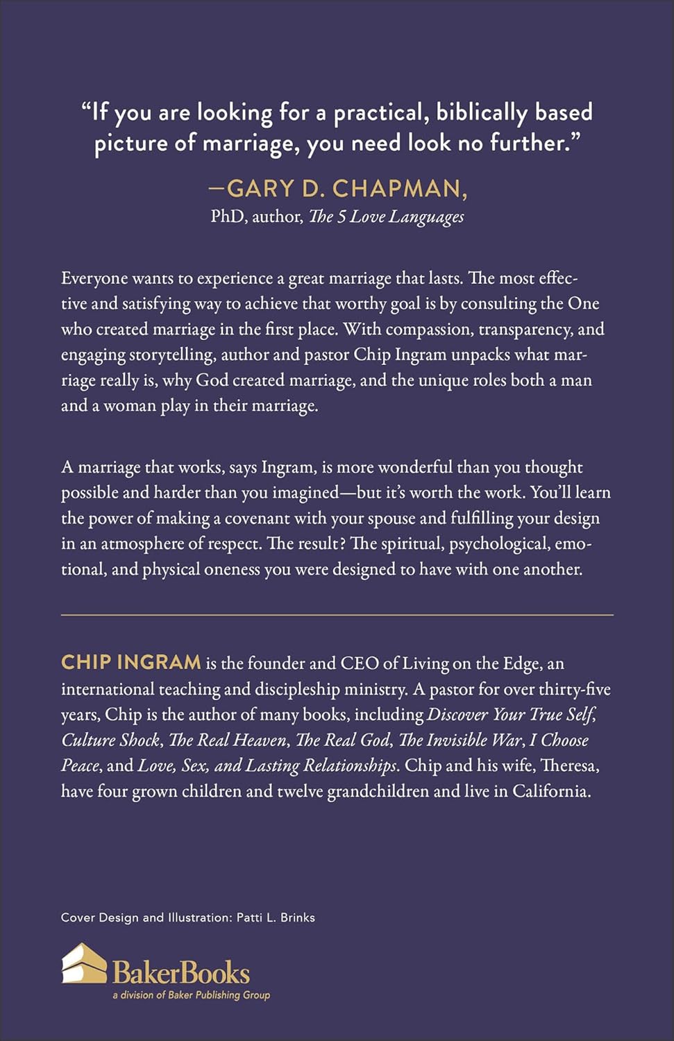 When it comes to marriage these days, anything goes. No wonder you can find a book on marriage from every perspective--or no perspective. How can you experience a great marriage that lasts? What works? This book answers that question by shining a light on the biblical design for marriage. In a world of sexual and relational confusion, isn't it time to consult the One who created marriage? Author and pastor Chip Ingram, with his characteristic compassion, transparency, and engaging storytelling, discusses - what marriage really is - the biblical model - a man's unique role in marriage - a woman's unique role in marriage - the bigger picture of why God created marriage A marriage that works, says Ingram, is more wonderful than you thought possible and harder than you imagined--but worth the work. Couples will learn the power of making a covenant with their spouse and fulfilling their design in an atmosphere of respect, resulting in the spiritual, psychological, emotional, and physical oneness they long to have with each other.