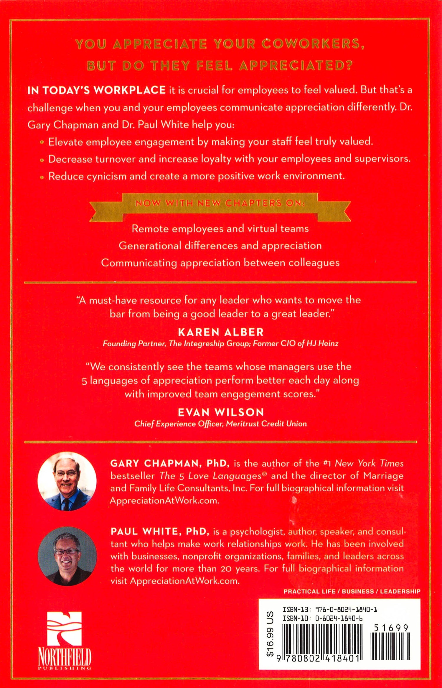 This book will give you the tools to improve staff morale, create a more positive workplace, and increase employee engagement. How? By teaching you to effectively communicate authentic appreciation and encouragement to employees, co-workers, and leaders. Most relational problems in organizations flow from this question: do people feel appreciated? This book will help you answer “Yes!”