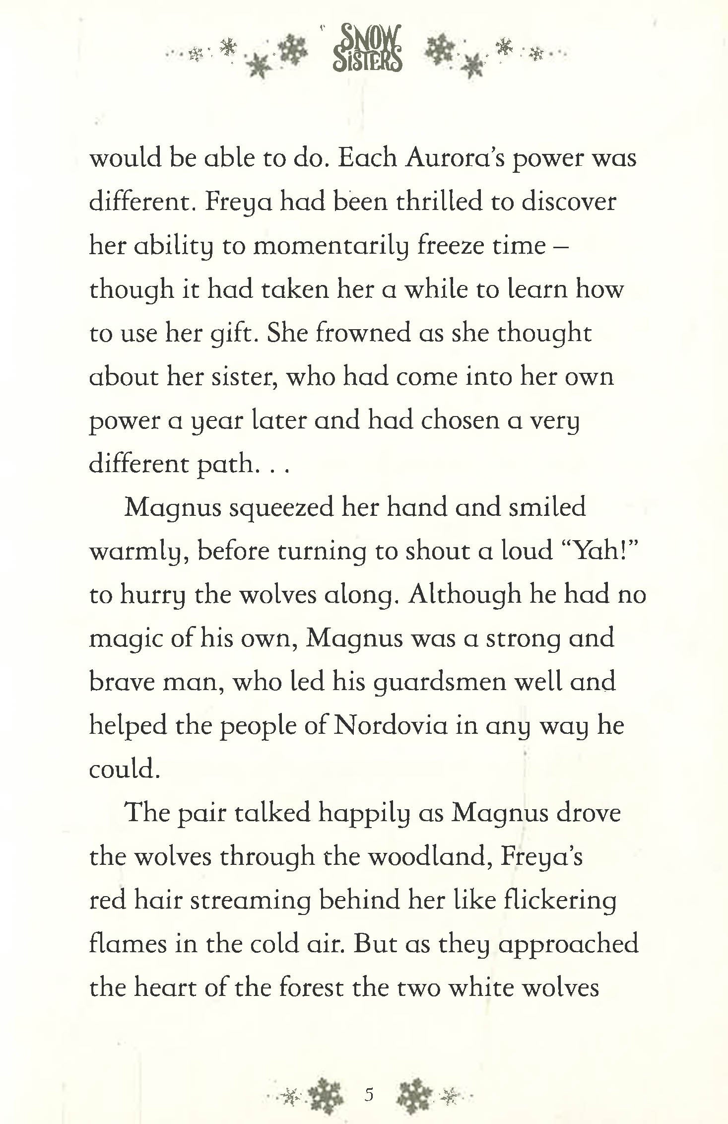 The first in the Snow Sisters series. Three brave sisters must race to discover their magical powers and save their home and their parents from the evil Shadow Witch! Luckily, they have a brave polar bear cub and a cast of cute snowy animals to help them...