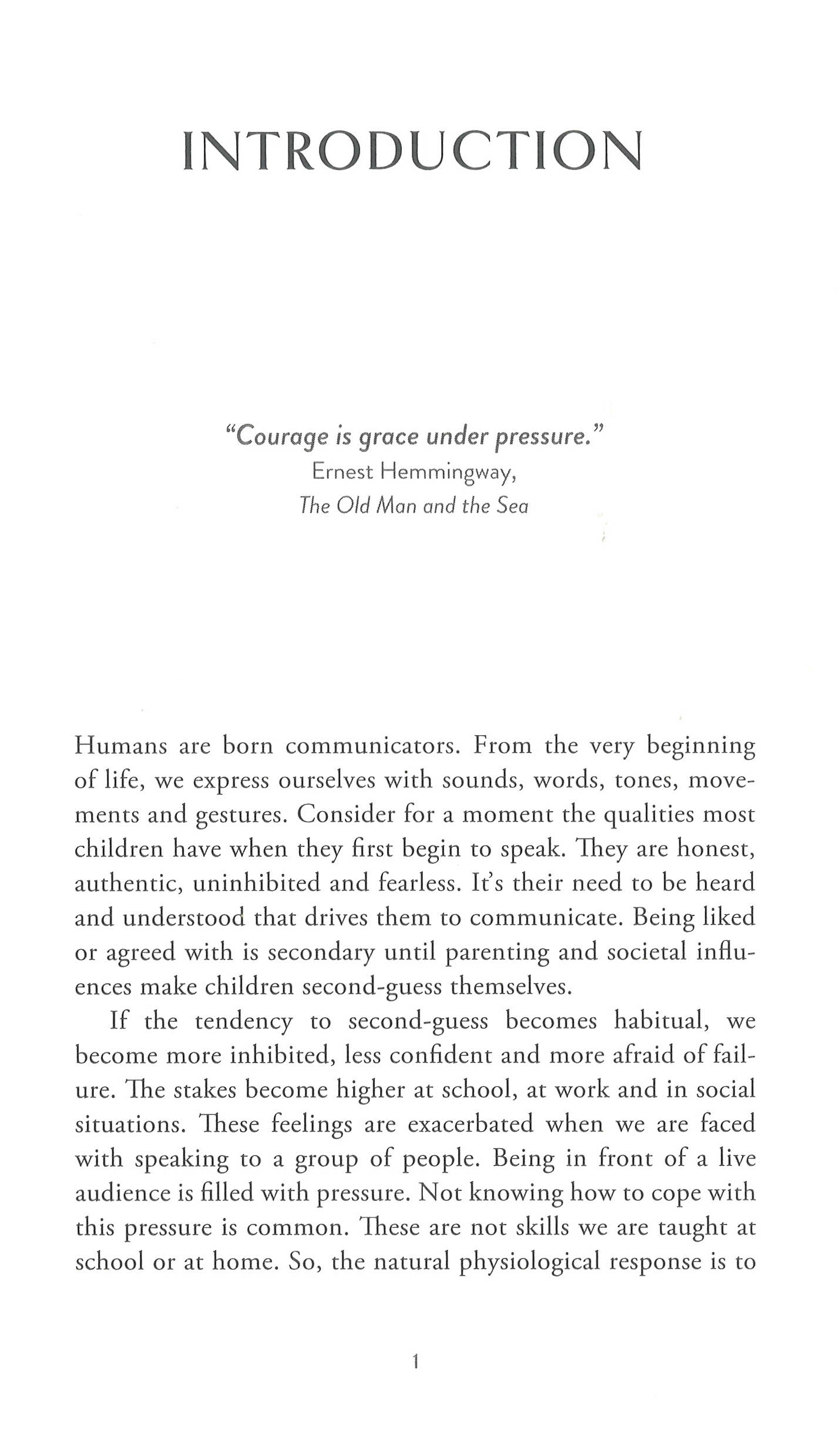 According to most studies, public speaking is the number one fear amongst professionals. Most suffer from stage fright, lack of basic vocal training and/or lack of delivery technique, and seek tips and tricks in books, articles and blogs. However, these sources often fail to address the underlying issue of stage fright, and the same habitual responses to nervousness continue to plague the speaker. Grace Under Pressure solves this issue by unveiling three areas of training that great speakers use to develop their skills. In the first section, author Lisa Wentz shares techniques that she has developed to help anyone overcome inner obstacles, so that they can focus on developing their outward presence. The second section outlines how to best develop the physical aspects of speech, including posture, breathing, resonance and articulation. And the third section centres on delivery: how to use pauses, word stress and storytelling, among other techniques, to improve your performance from novice to master. This final section offers acting techniques and directorial advice that can be applied to speeches, pitches, presentations and meeting strategies.