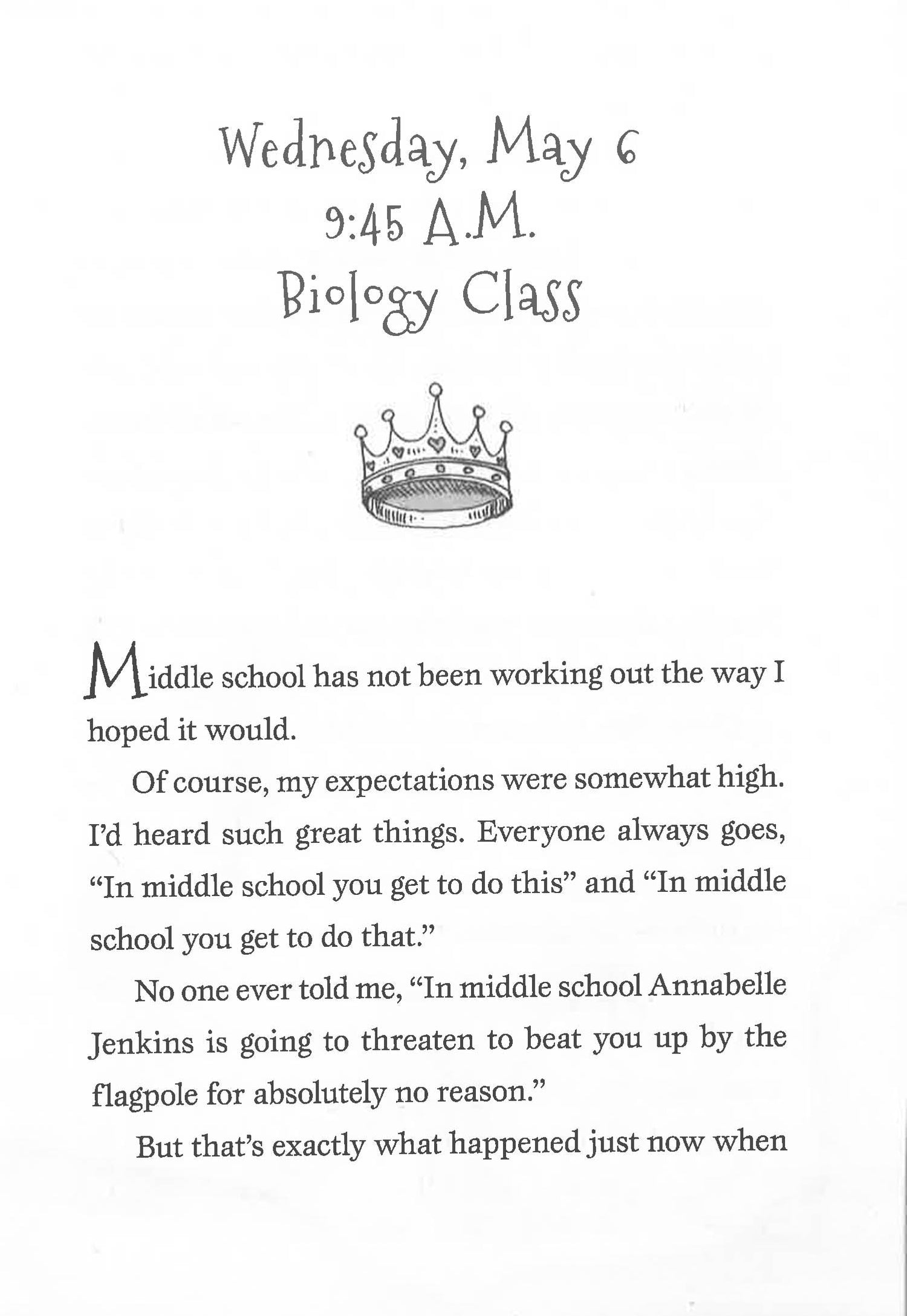 Until a limo containing Princess Mia Thermopolis of Genovia pulls up to invite her to New York to finally meet her father, who promptly invites her to come live with him, Mia, Grandmère and her two fabulous poodles . . . .