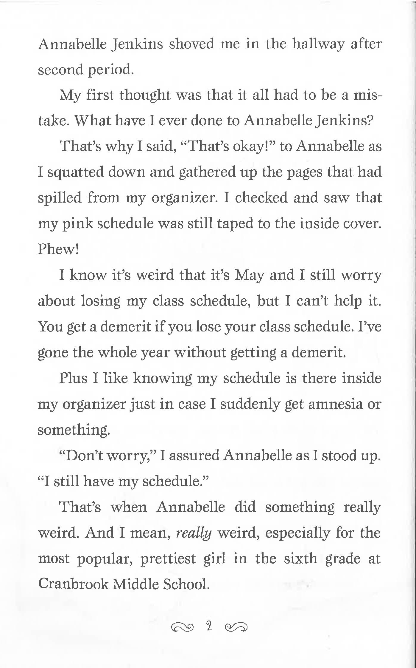 Then one completely average day, everything goes wrong: the most popular girl in school, Annabelle Jenkins, threatens to beat her up, the principal gives her a demerit, and she's knocked down at the bus stop . . .