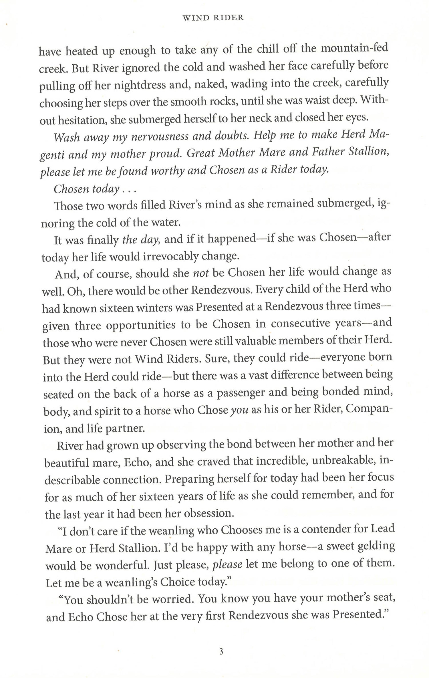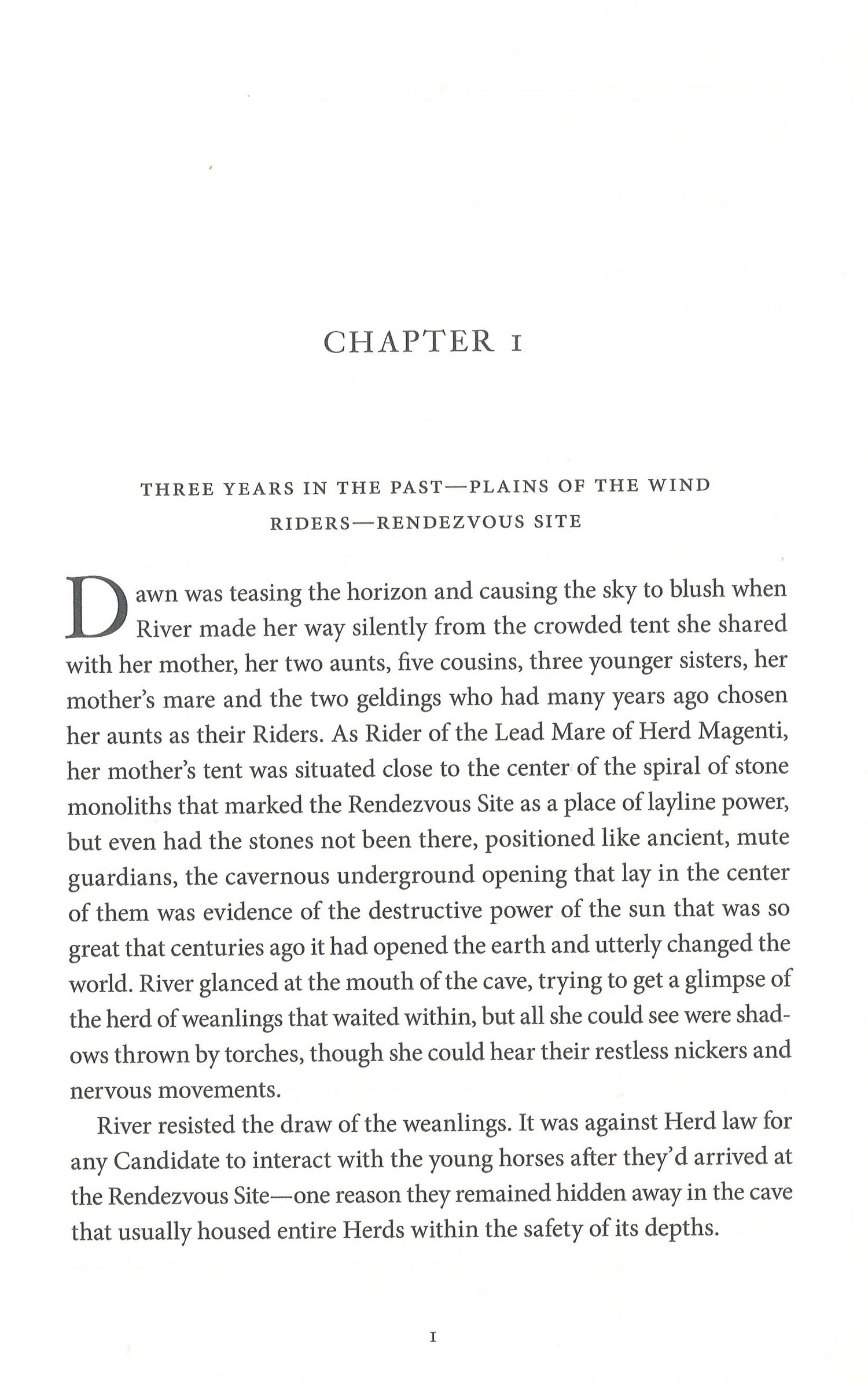 A madman has driven Mari, Nik, and their Pack from the only home they have ever known. He will stop at nothing until they are obliterated from the earth. Mari knows their only chance of survival is to reach the plains of the Wind Riders, a legendary people known for their bond with their remarkable horses and their unmatched riding abilities. Driven by love and unshakable determination, Mari, and her Companion, Nik chart a perilous journey as they seek safety and sanctuary.