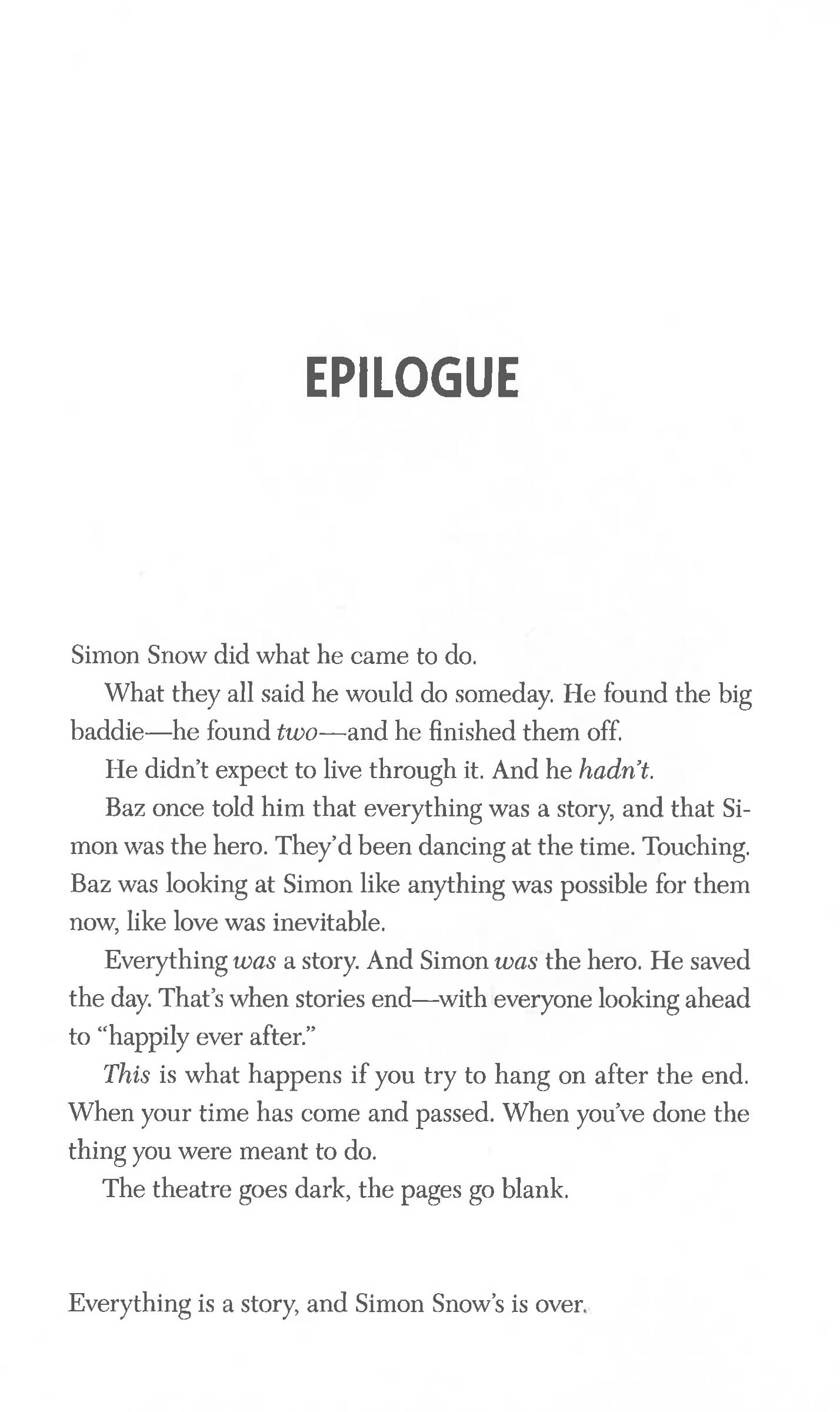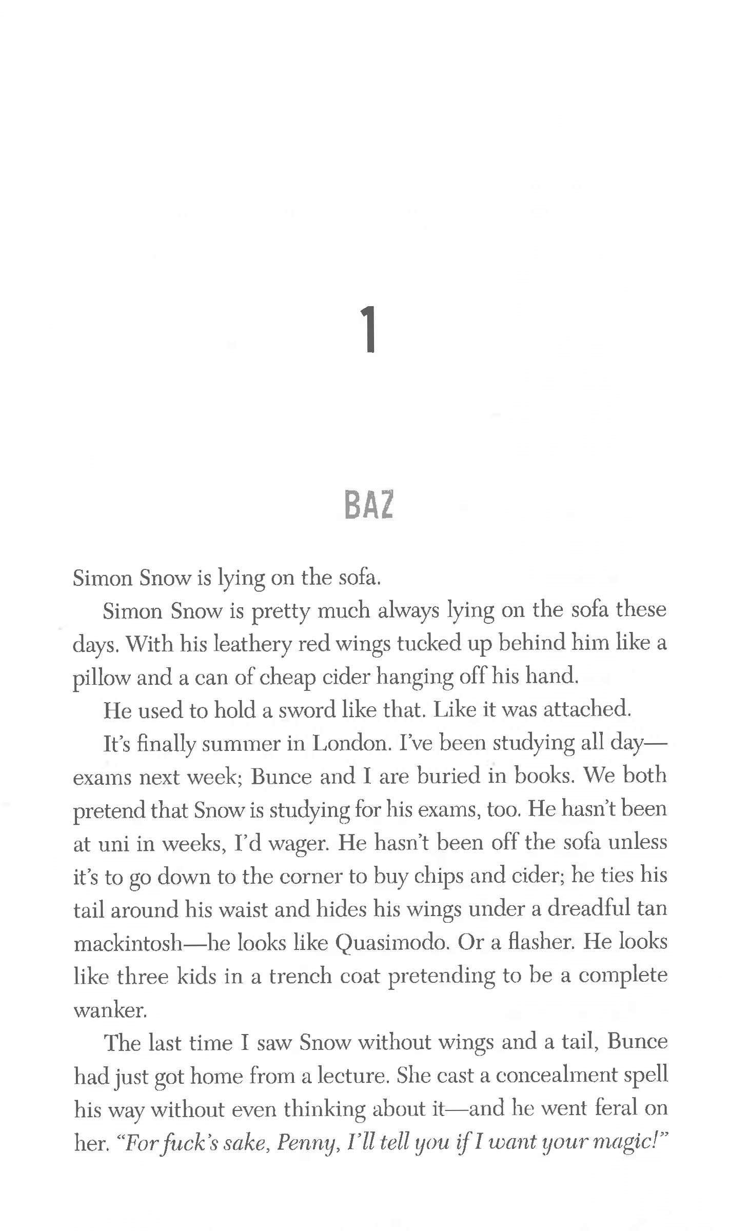 The story is supposed to be over. Simon Snow did everything he was supposed to do. He beat the villain. He won the war. He even fell in love. Now comes the good part, right? Now comes the happily ever after... So why can't Simon Snow get off the couch? What he needs, according to his best friend, is a change of scenery. He just needs to see himself in a new light.