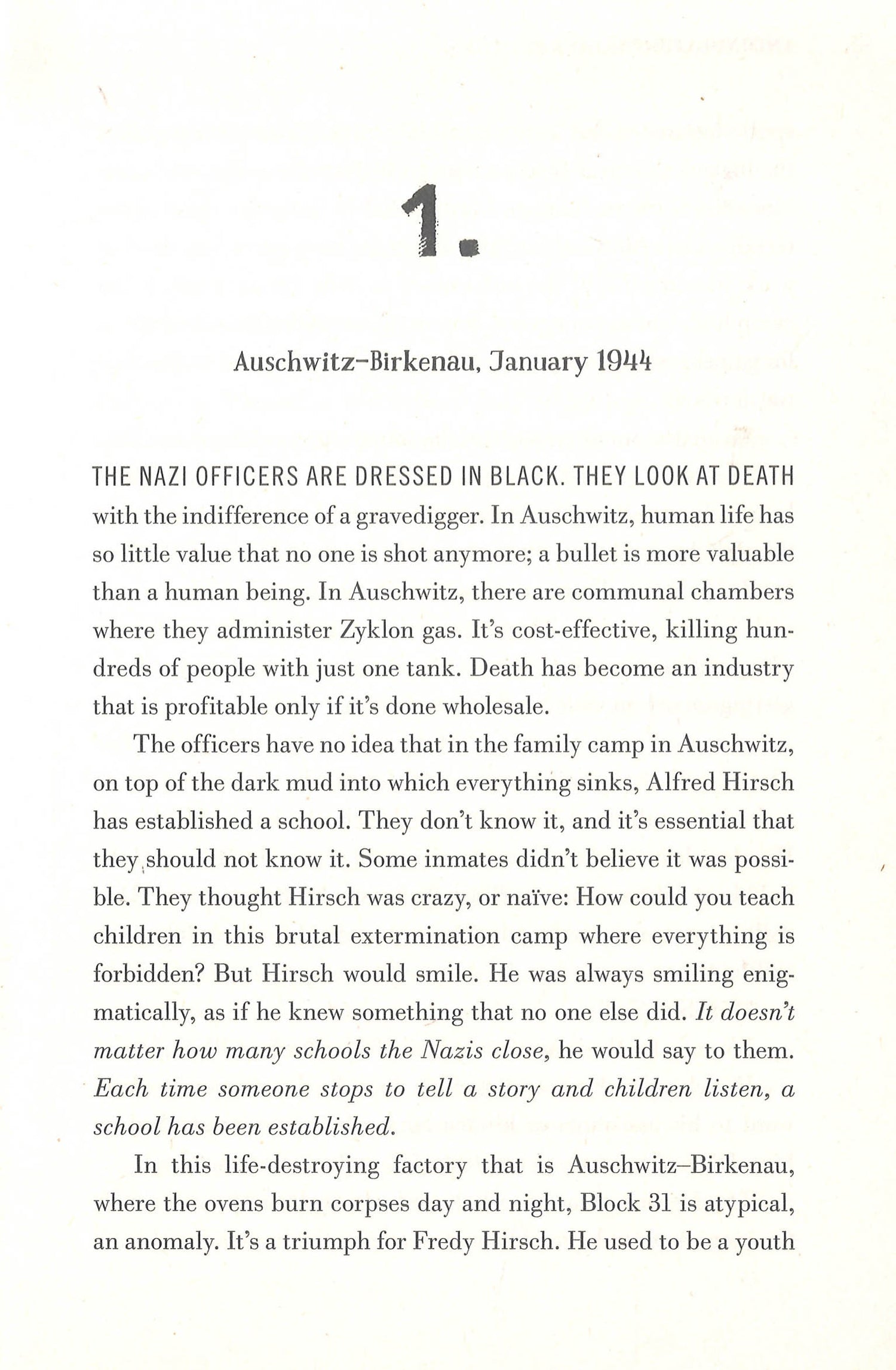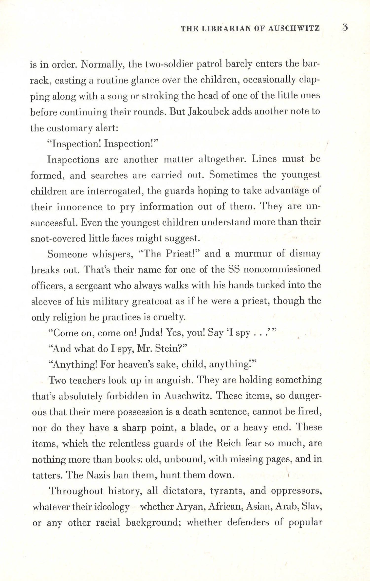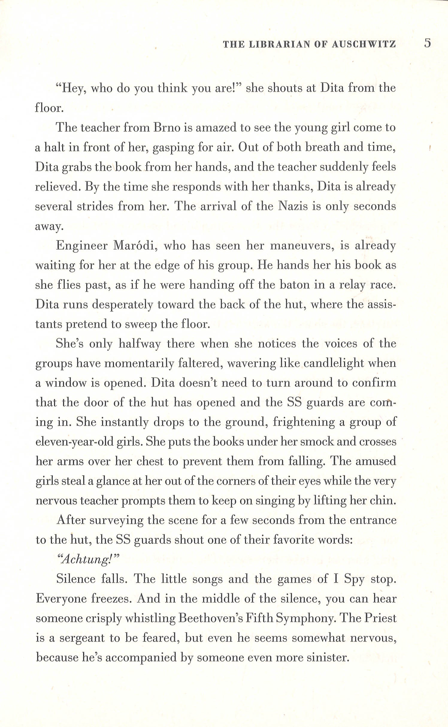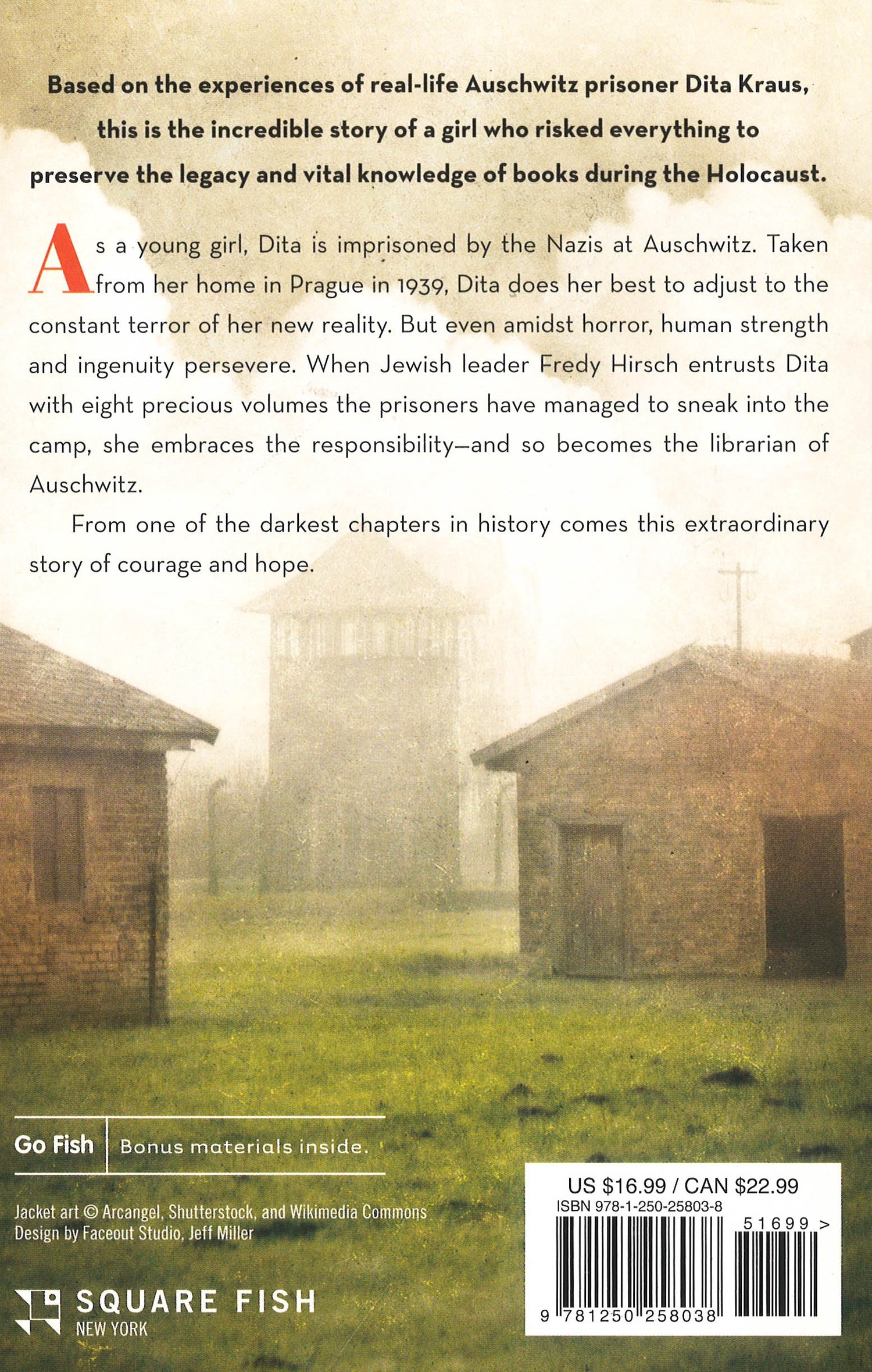 As a young girl, Dita is imprisoned by the Nazis at Auschwitz. Taken from her home in Prague in 1939, Dita does her best to adjust to the constant terror of her new reality. But even amidst horror, human strength and ingenuity persevere. When Jewish leader Fredy Hirsch entrusts Dita with eight precious volumes the prisoners have managed to sneak into the camp, She embraces the responsibility--and so becomes the librarian of Auschwitz.