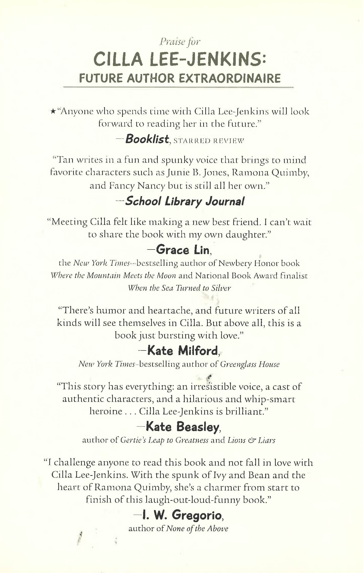 "Anyone who spends time with Cilla Lee-Jenkins will look forward to reading her in the future." --Booklist, starred review, on Cilla Lee-Jenkins: Future Author Extraordinaire