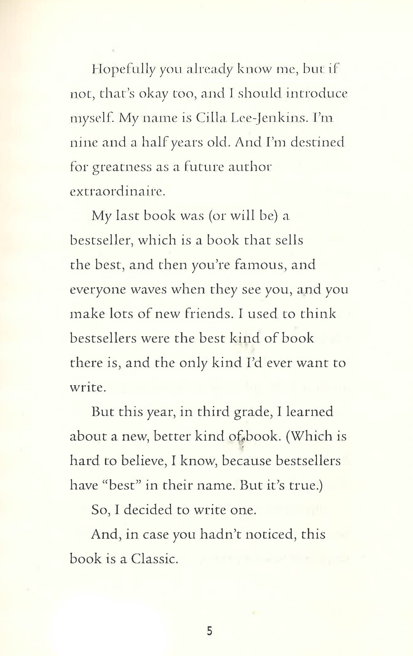 In the second middle-grade novel starring exuberant third grader Cilla Lee-Jenkins, the future bestselling author writes a Classic.