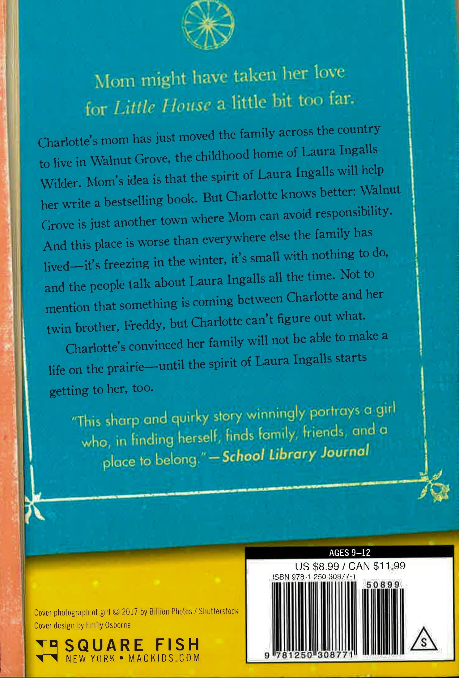Charlotte's mom has just moved the family across the country to live in Walnut Grove, "childhood home of pioneer author Laura Ingalls Wilder." Mum's idea is that the spirit of Laura Ingalls will help her write a bestselling book. But Charlotte knows better: Walnut Grove is just another town where Mom can avoid responsibility. And this place is worse than everywhere else the family has lived - it's freezing in the winter, it's small with nothing to do, and the people talk about Laura Ingalls all the time. Charlotte's convinced her family will not be able to make a life on the prairie - until the spirit of Laura Ingalls starts getting to her, too.