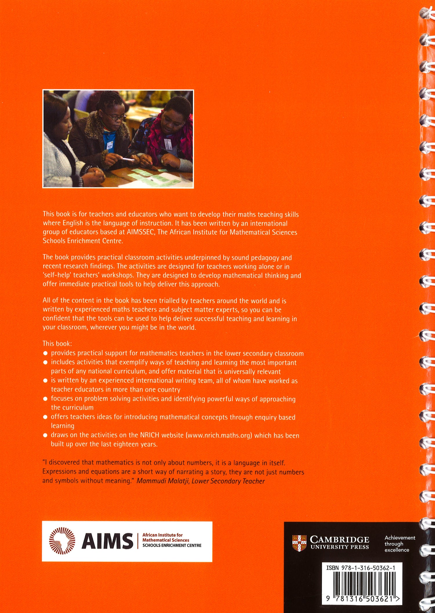 This series is for maths teachers who want to develop their maths teaching skills. This book is for teachers and educators who want to develop their maths teaching skills where English is the language of instruction. It has been written by the international group of educators based at AIMSSEC, The African Institute for Mathematical Sciences Schools Enrichment Centre. The book provides practical classroom activities underpinned by sound pedagogy and recent research findings. The activities are designed for teachers working alone or in 'self-help' teachers' workshops. They are designed to develop mathematical thinking and offer immediate practical tools to help deliver this approach.