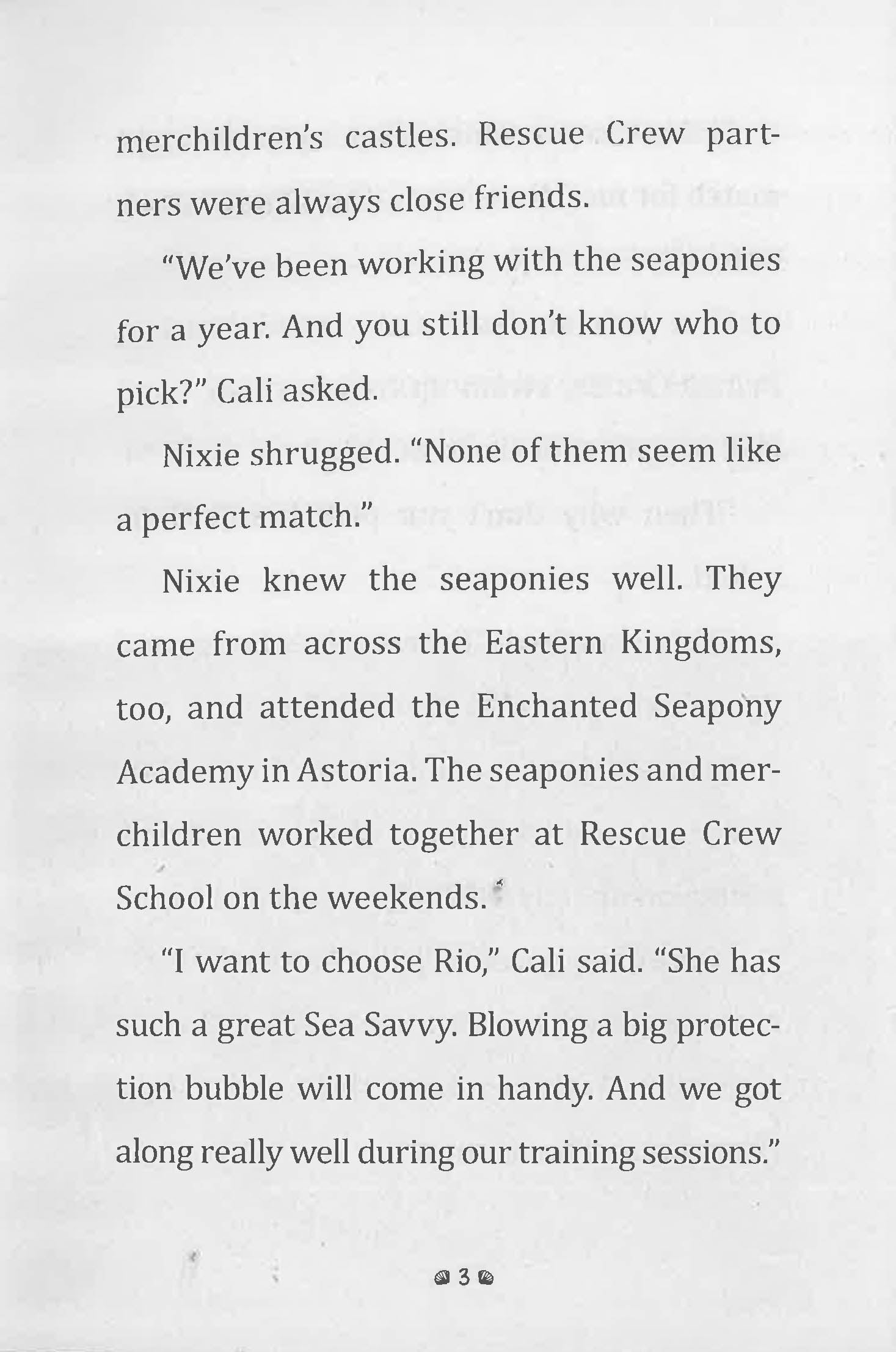 Be brave and keep the seas safe!Nixie can't wait to join the Royal Mermaid Rescue Crew. Along with a magical seapony partner, she'll save merpeople in danger and use her natural creativity to keep the seas safe! But then Nixie gets matched with Rip -- a super-speedy seapony who's at the top of his class, but also a strict rule-follower. Rip and Nixie couldn't be more different!Will Nixie be able to befriend Rip...or will she have to look for another fish in the sea?