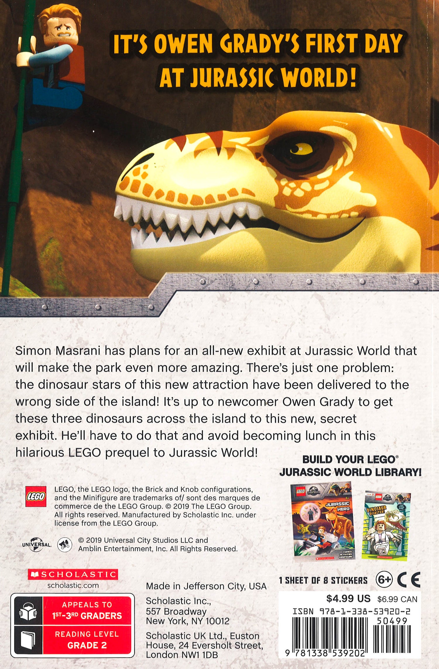 A new exhibit is set to open in LEGO Jurassic World, and Owen and Claire are in charge! With the grand opening of Simon Masrani's secret dinosaur exhibit just days away, the dinosaurs are missing! Owen's first job at Jurassic World is to deliver the dinosaurs to the new attraction-can he do this successfully? This laugh-out-loud reader is perfect for fans of LEGO and Jurassic World alike!