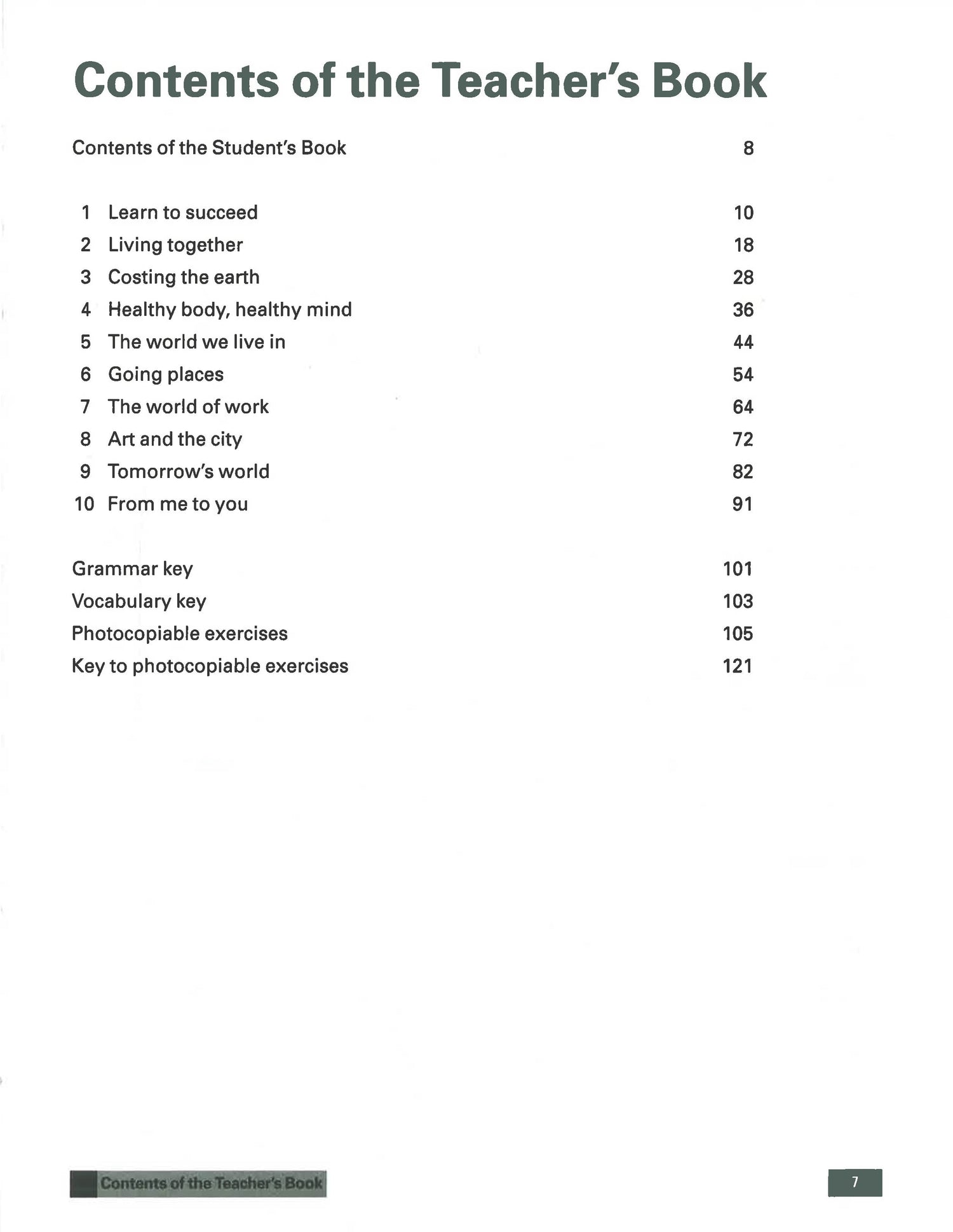 The Teacher's Book contains clear teaching notes for the activities in the Student's Book, along with answer keys and useful suggestions for optional activities that can be used to supplement the core material. Ten photocopiable practice activities are also found at the back at the book, related to each unit of the Student's Book.
