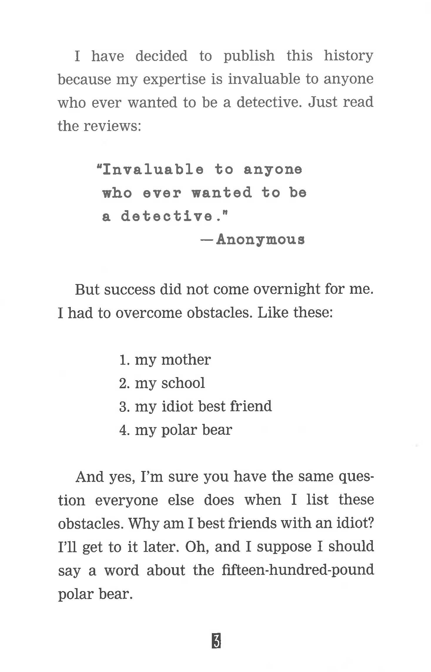 Meet Timmy Failure, founder of the "best" detective agency in town - Total Failure, Inc. With the help of his polar bear Total, the clueless, comically self-confident Timmy already has plans for world domination. Plans that will make his mother rich and unpaid bills a thing of the past. And plans that will defeat Corrina Corrina, "The One Whose Name Shall Not Be Uttered".